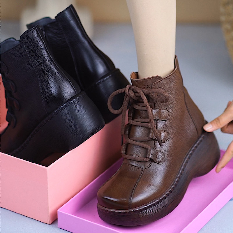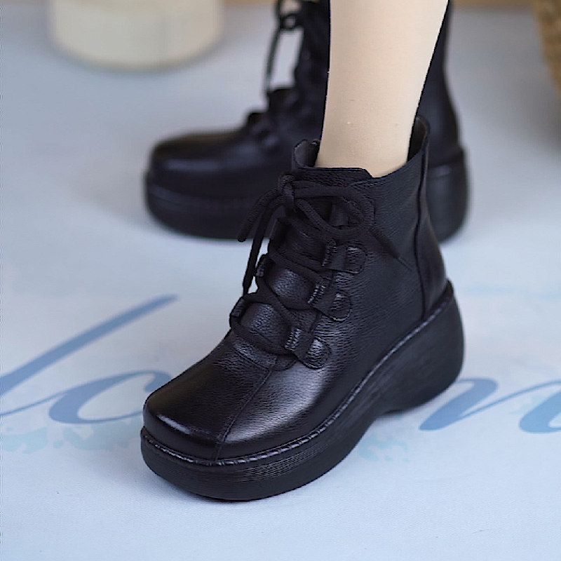 2025年秋冬新款真皮厚底马丁靴,专为时尚妈妈打造,融合复古格调与现代舒适。采用优质软皮材质,触感细腻、耐穿透气,短筒设计利落百搭,轻松驾驭牛仔裤、裙装或休闲裤。加厚鞋底不仅提升身高,更提供全天候缓震支撑,久走不累。经典8孔绑带设计,复古中透着个性,彰显优雅从容的成熟魅力。无论是日常通勤还是周末出行,这款马丁靴都能为妈妈们的秋冬造型增添一抹时尚亮点,兼顾舒适与品味,是实用与美感的完美结合。