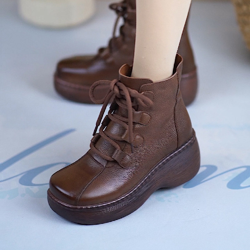 淘宝真皮厚底马丁靴女2025新款秋冬季时尚复古短筒软皮妈妈鞋子