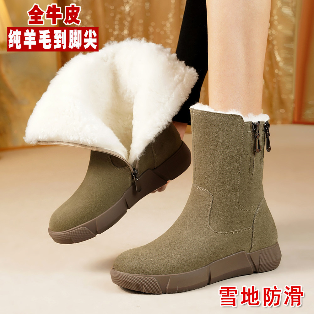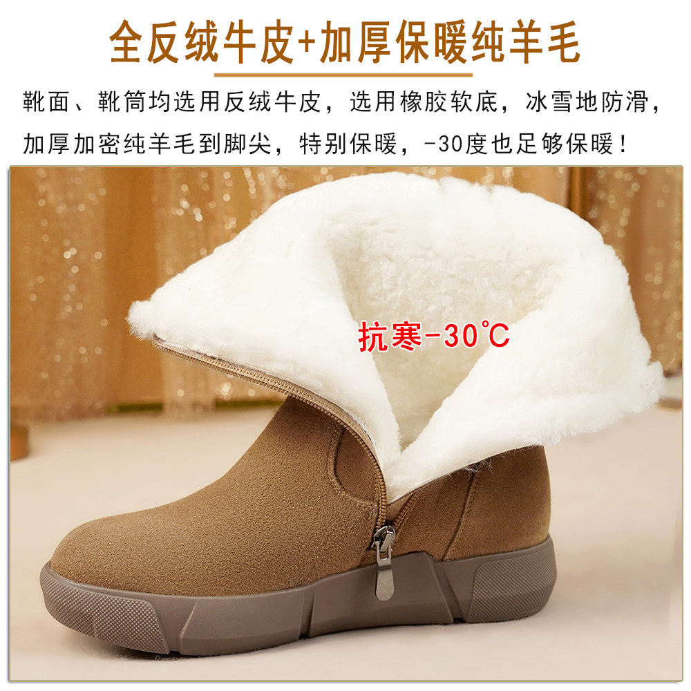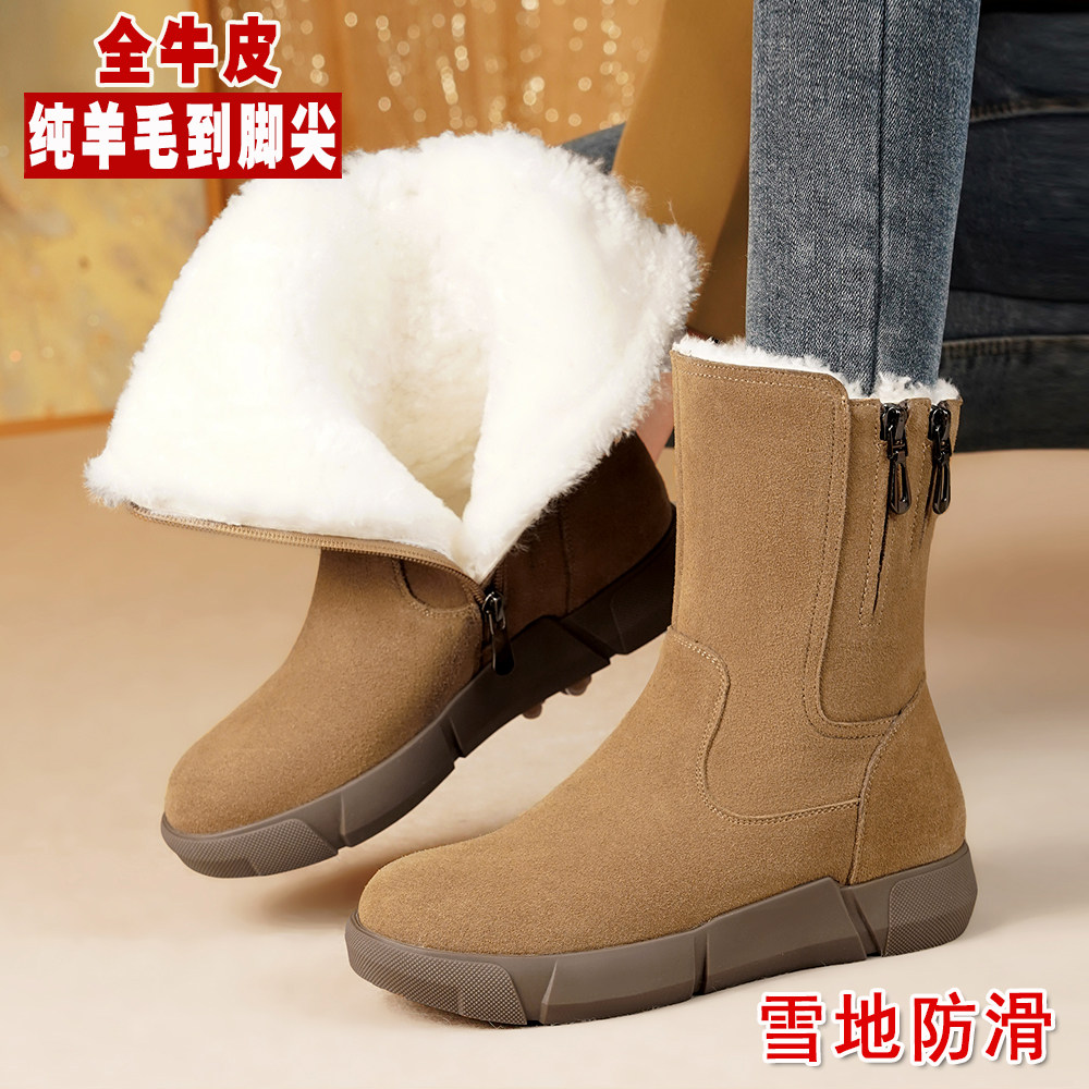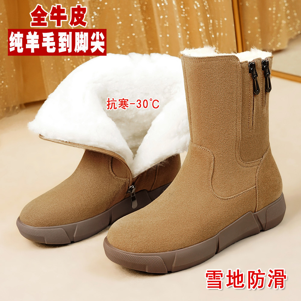 天猫东北大棉鞋子厚底雪地靴女款秋冬季女鞋加厚羊毛靴子妈妈真皮棉靴