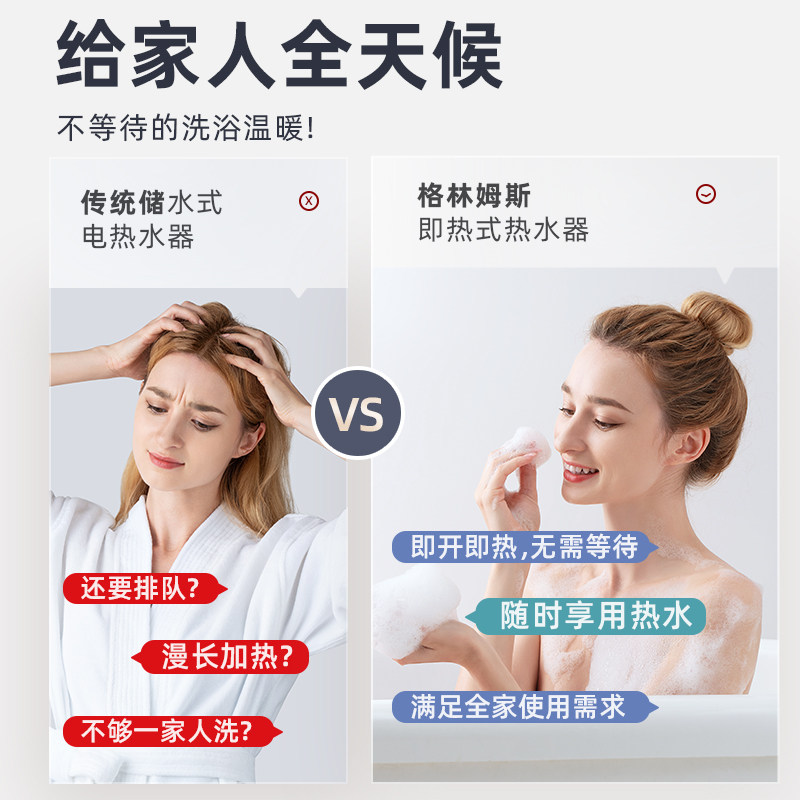 天猫格林姆斯即热式电家用电热水器小型迷你快热式恒温淋浴神器洗澡机