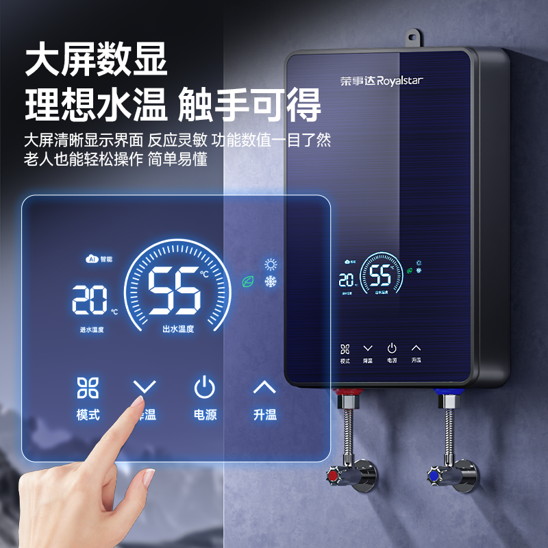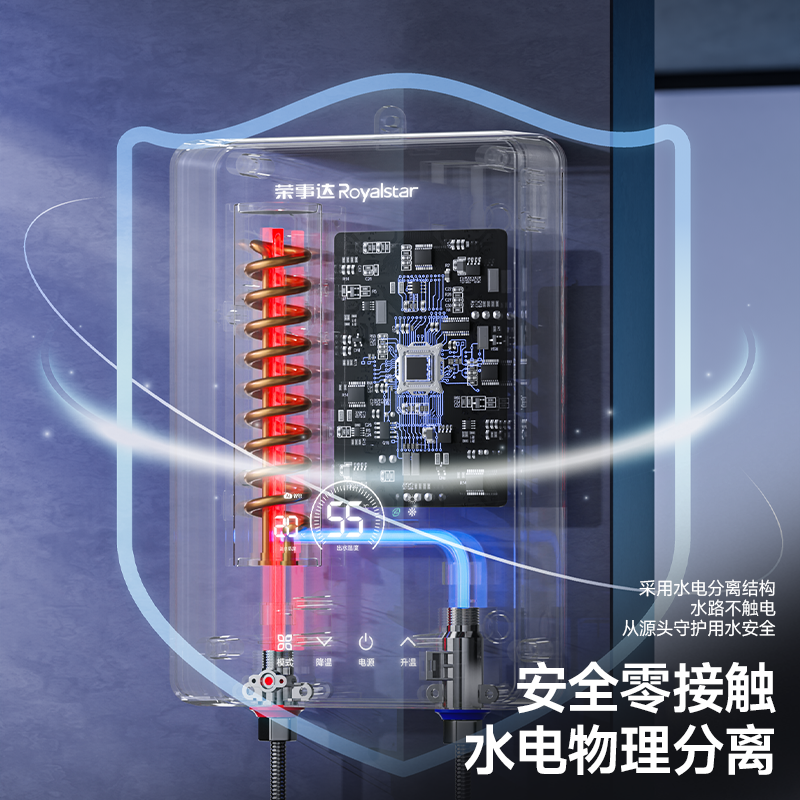 荣事达即热式电热水器是一款专为家庭卫生间设计的高效节能洗浴设备。采用先进的变频恒温技术,实现即开即热,无需预热等待,水温精准恒定,告别忽冷忽热。小巧机身节省空间,适合各类小户型卫生间安装。内置多重安全防护系统,包括防漏电、防干烧、防超压等,使用更安心。过水热设计提升加热效率,节能省电,满足全家连续洗浴需求。无论是冬季还是夏季,都能提供舒适稳定的热水体验。荣事达以可靠品质与人性化设计,打造安全、便捷、智能的居家洗浴新方式,是现代家庭理想的热水解决方案。