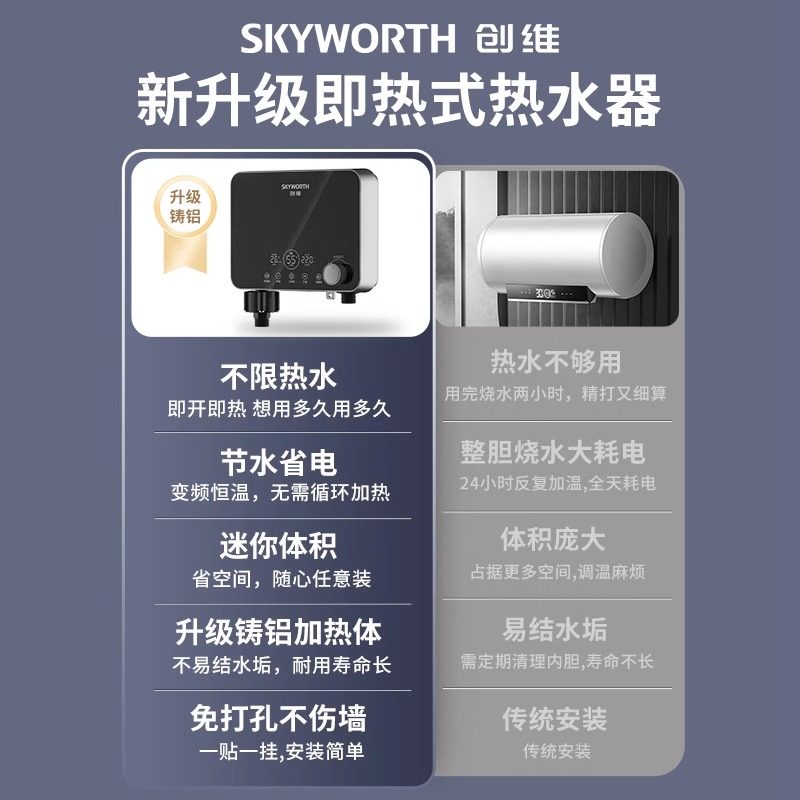 天猫创维即热式电热水器家用恒温变频快速过水热卫生间速热式小型洗澡