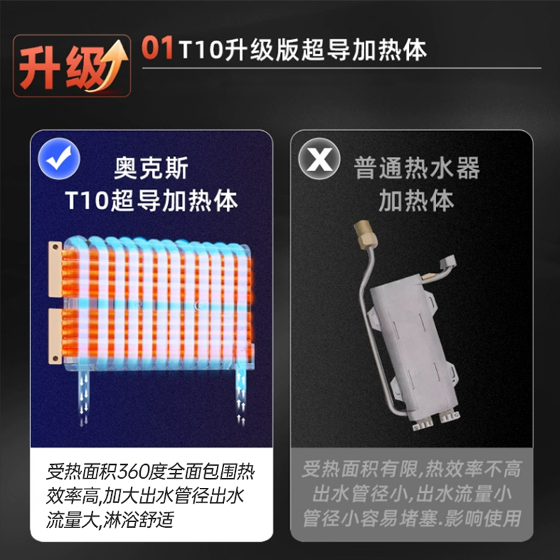 奥克斯即热式电热水器是一款专为家庭卫生间设计的小型速热洗浴设备,采用先进的变频恒温技术,实现出水温度精准控制,告别忽冷忽热。即开即热,无需预热等待,快速过水加热,节能高效,满足全家连续洗浴需求。机身小巧精致,安装灵活,节省空间,适配多种户型。内置多重安全保护系统,包括防漏电、防干烧、防超温等,使用更安心。智能触控面板操作简单,实时显示水温,老人小孩也能轻松上手。奥克斯即热式电热水器以高效、安全、舒适为核心,为您带来便捷舒适的现代洗浴体验,是提升居家生活品质的优选家电。