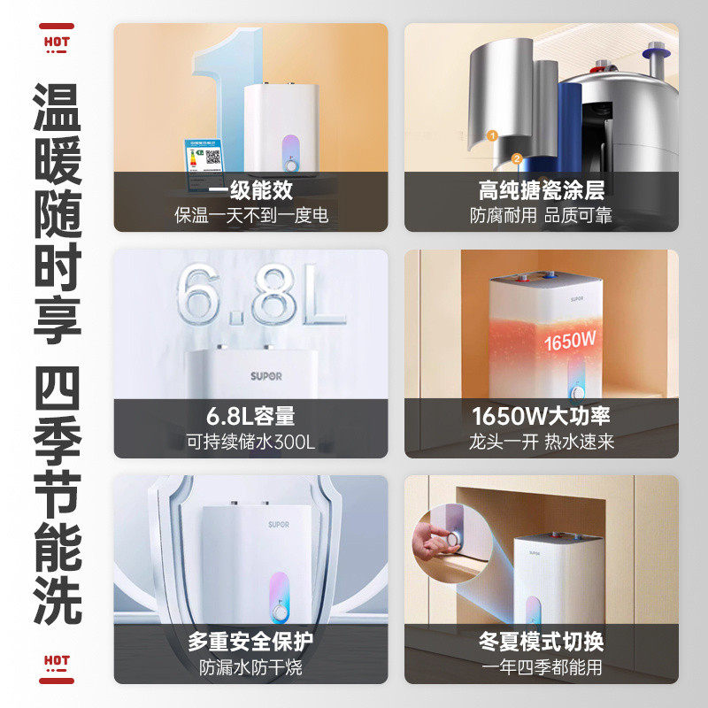 苏泊尔UK08厨宝聚合储水式小型家用电热水器大容量速热厨房热水宝