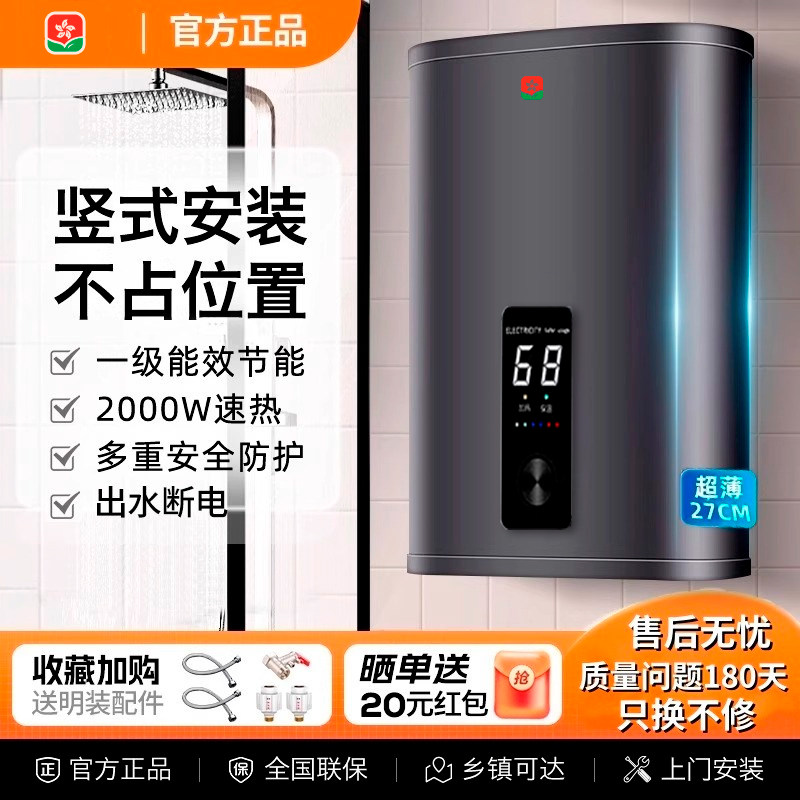 天猫樱花雨竖立式电热水器家用扁桶小型40升速热一级能效速热省空间