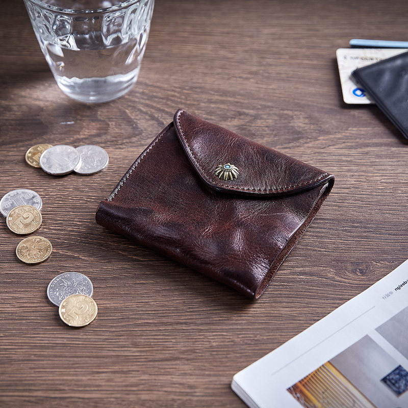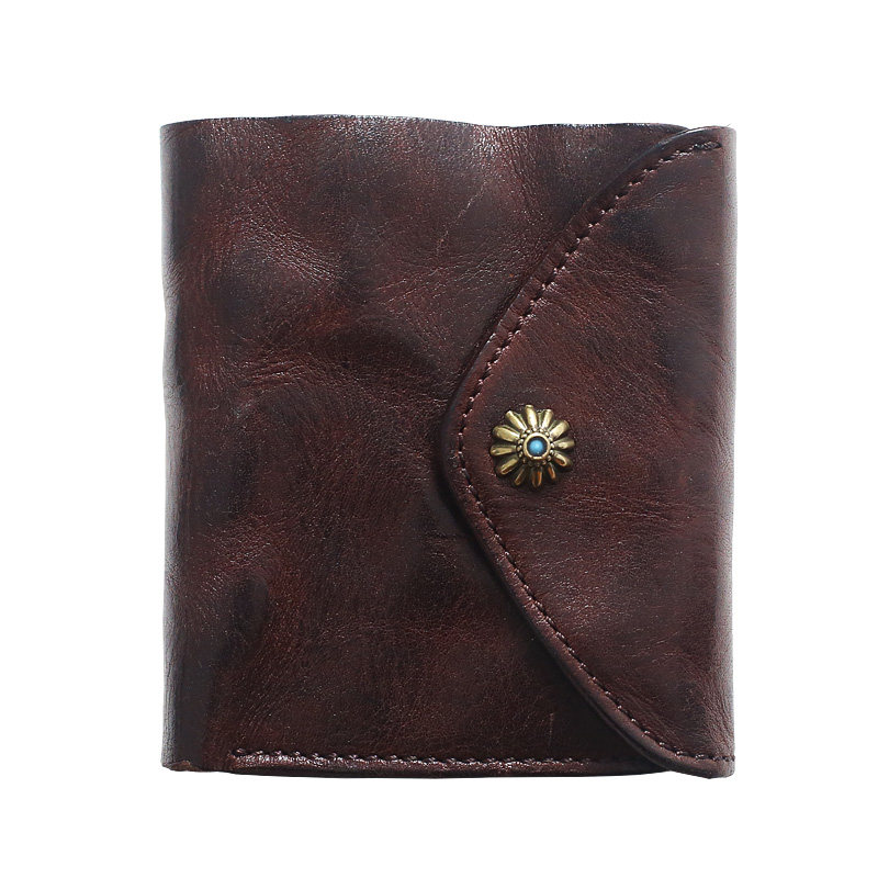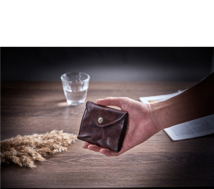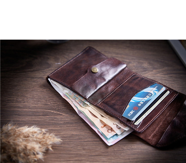 淘宝复古短款搭扣皮夹男士头层牛皮钱包真皮男包简约褶皱植鞣皮钱夹1