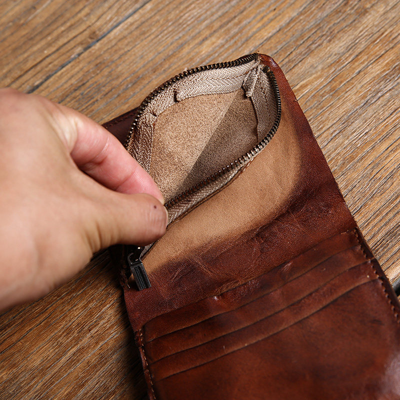 淘宝手工钱包男真皮短款超薄竖款钱夹复古潮牌头层牛皮小众极简皮夹