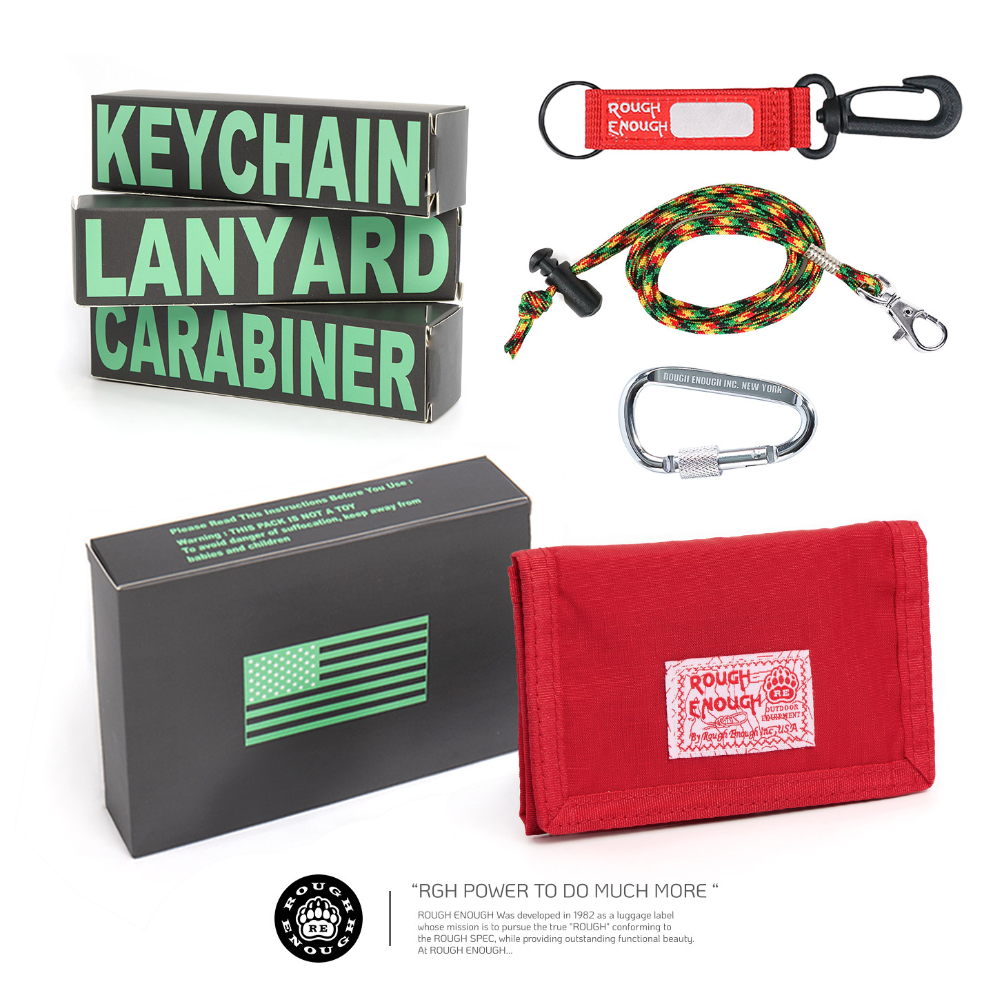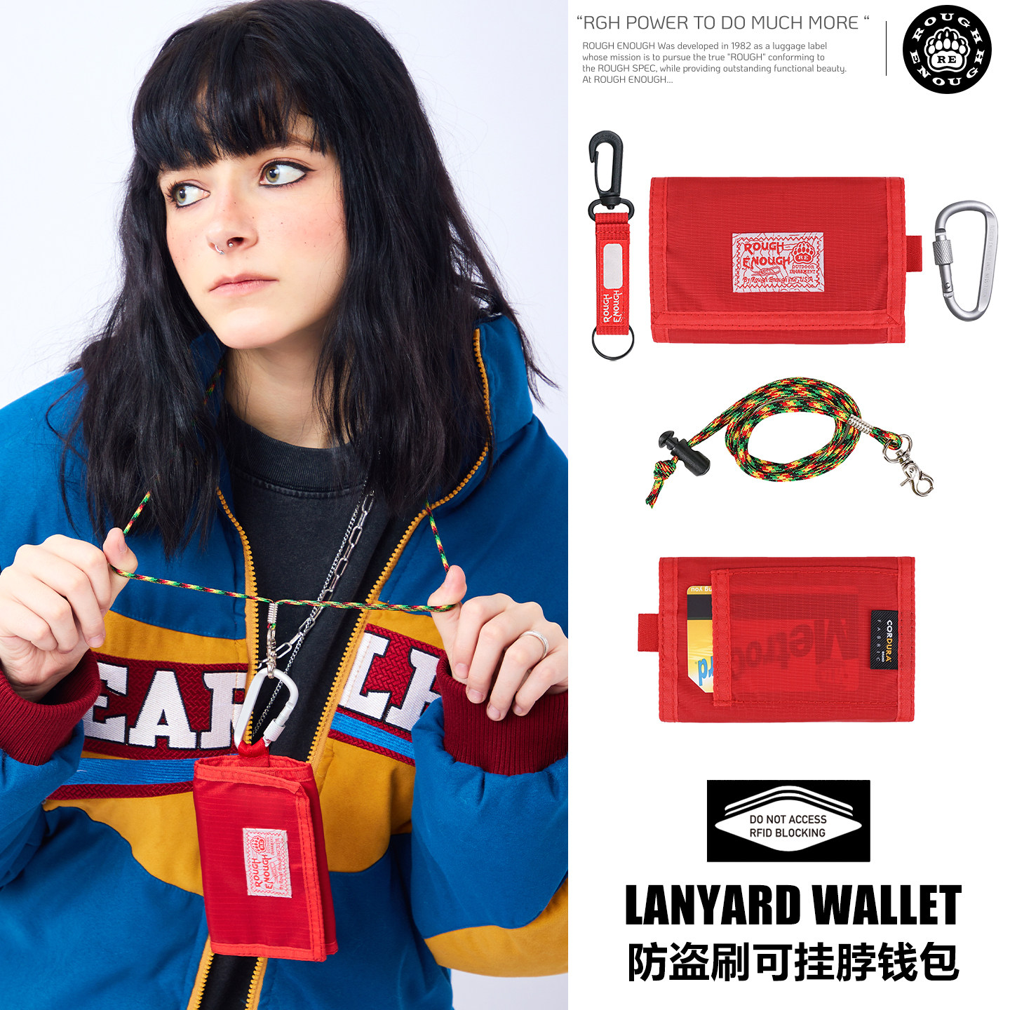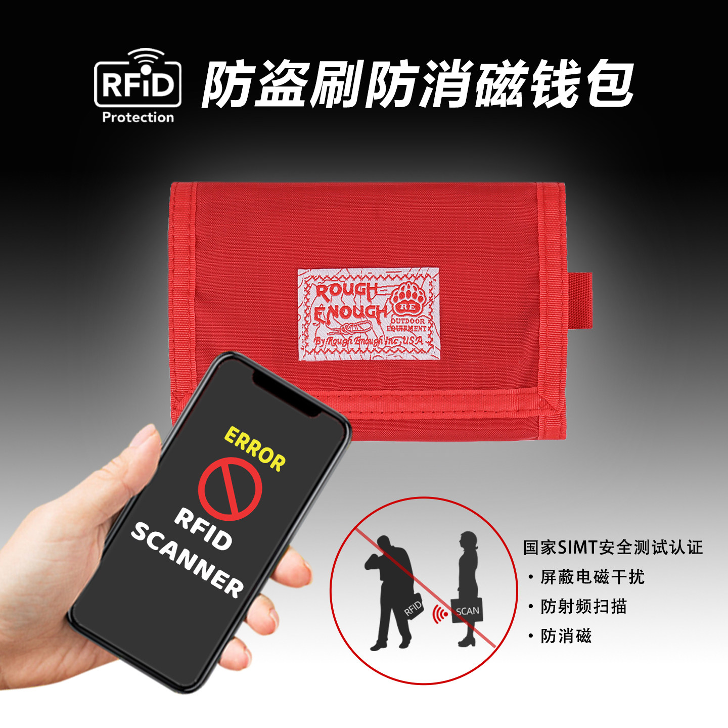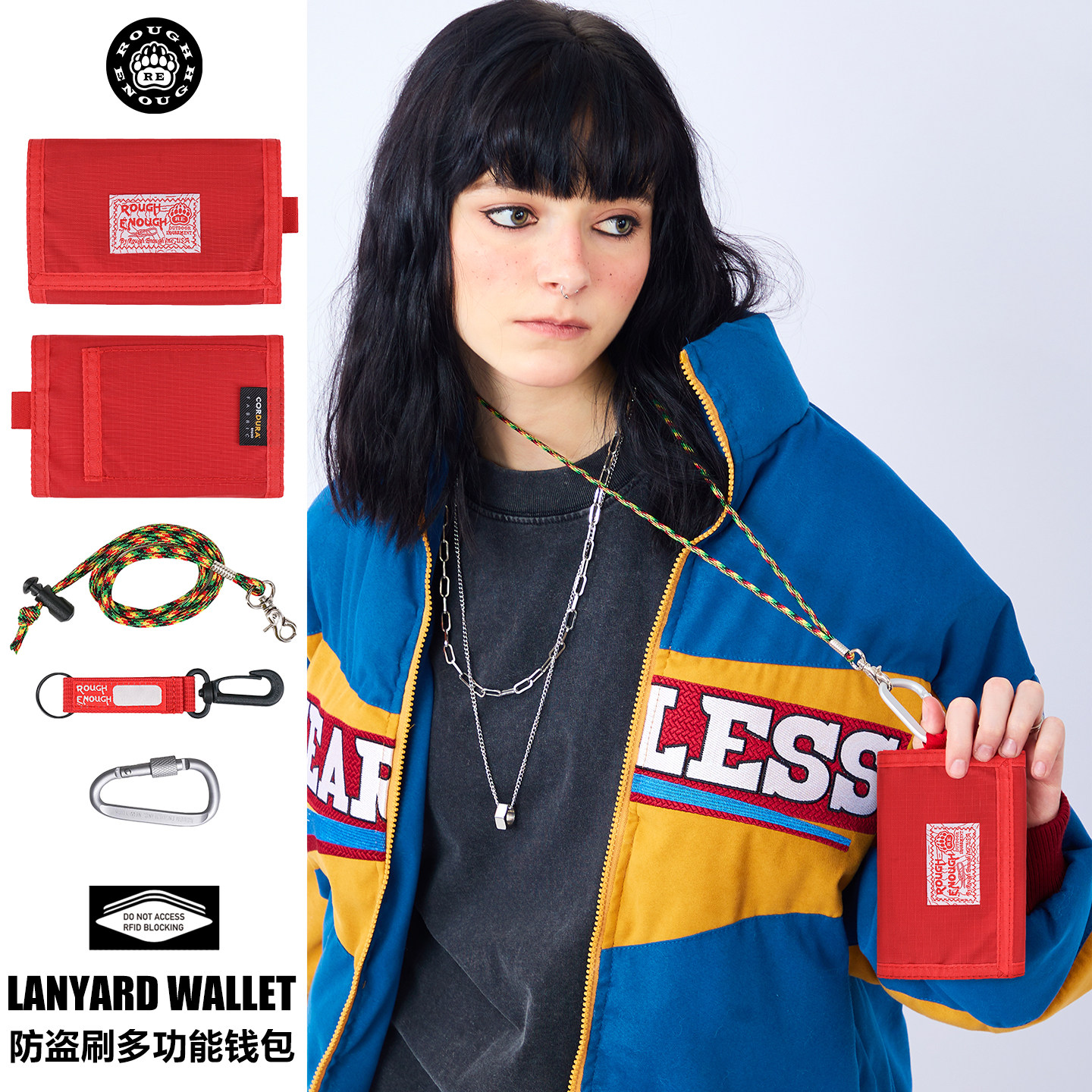 淘宝Rough Enough防水帆布钱包防盗刷红色多功能潮牌零钱包钱夹卡包女