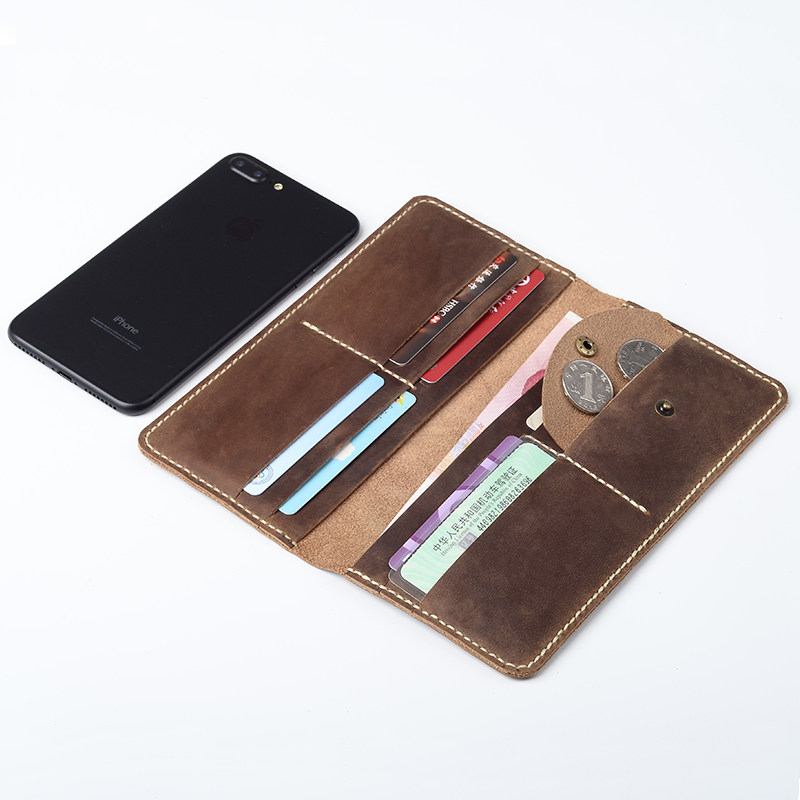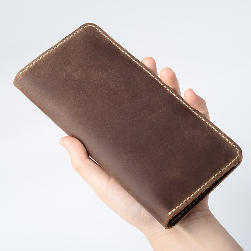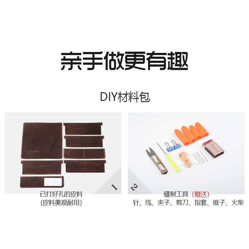 淘宝疯马皮复古多卡位长款手机包男女真皮钱包手缝钱夹手工DIY材料007