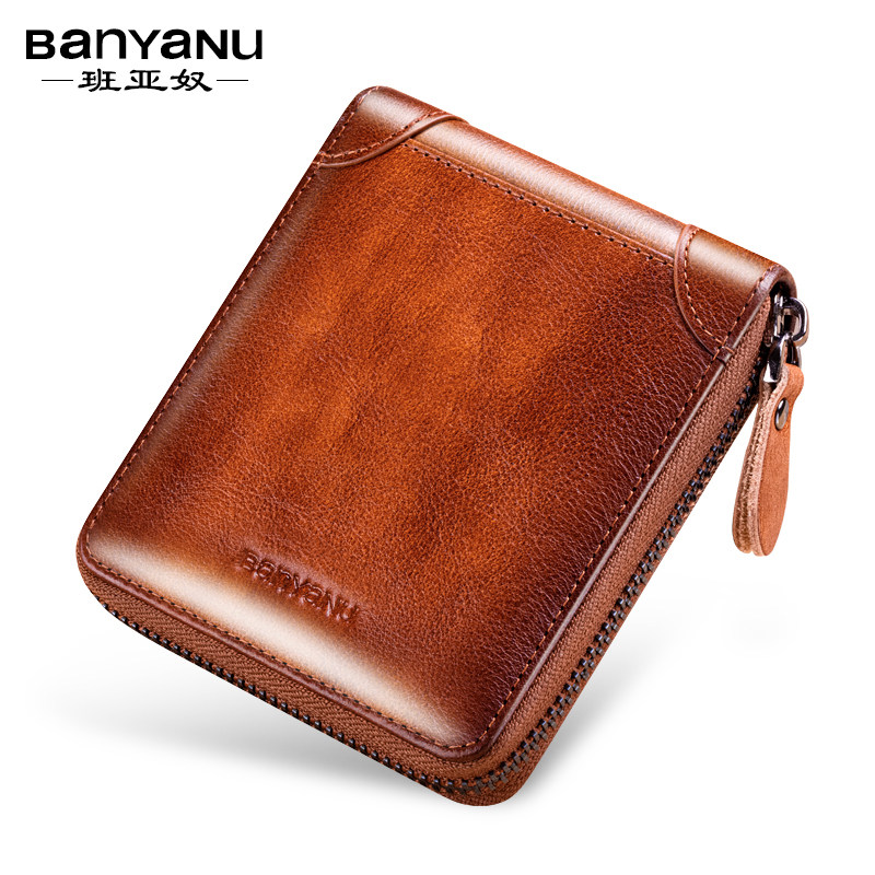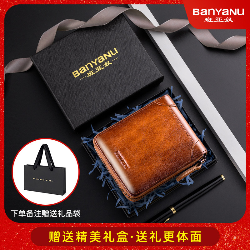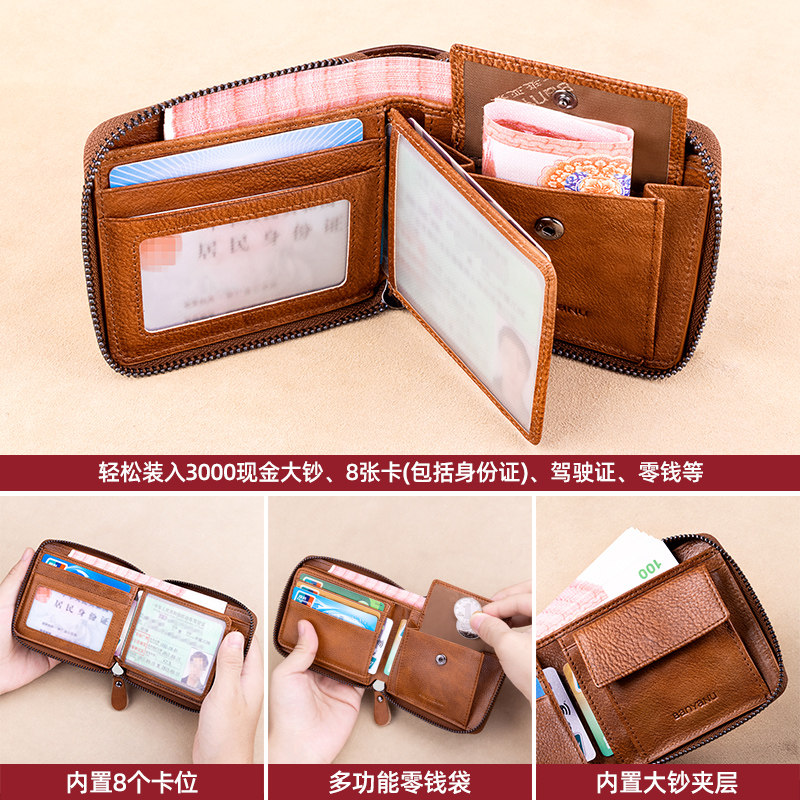 天猫男士钱包真皮短款拉链多功能皮夹2025新款牛皮大容量钱夹卡包一体