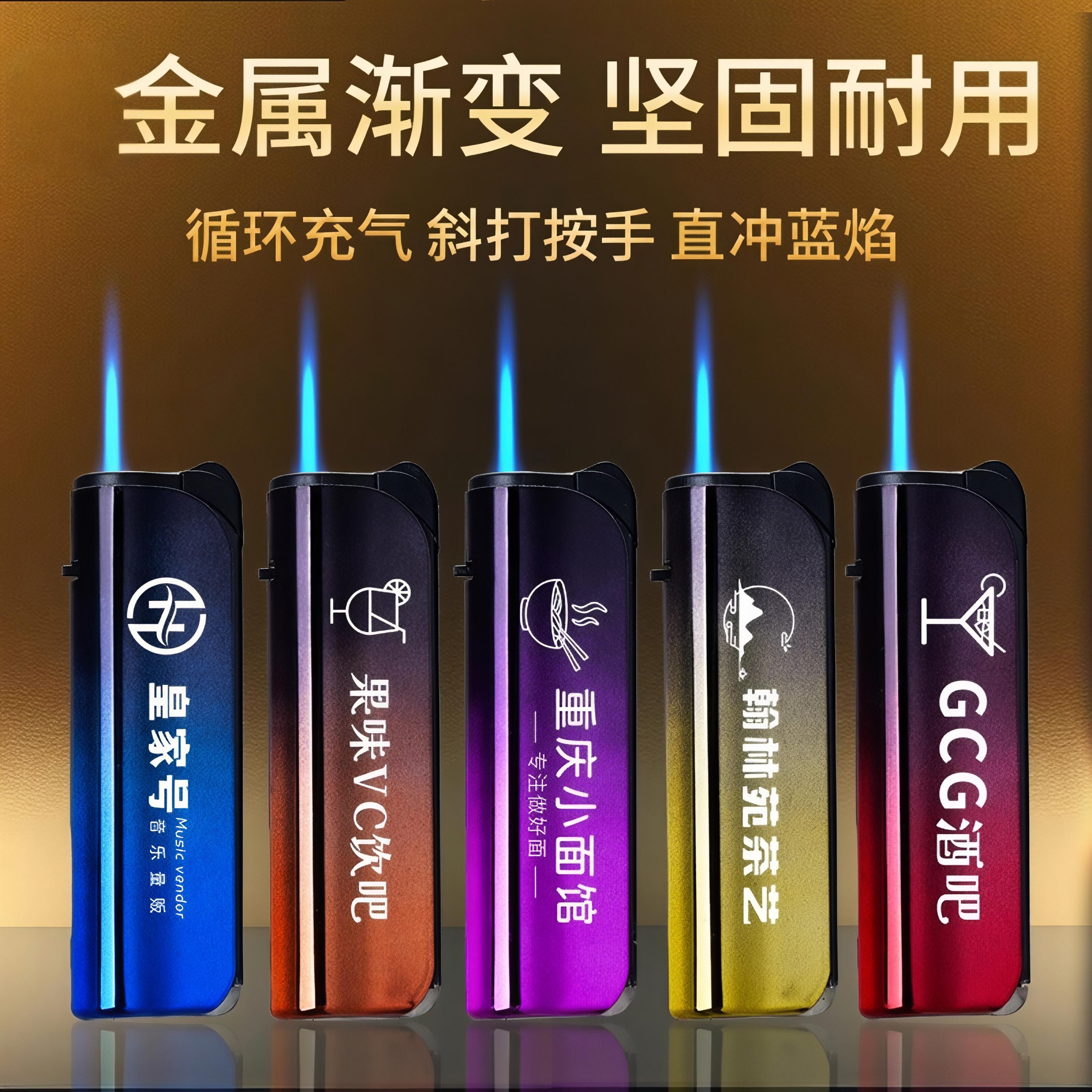 淘一大盒50支防风直冲打火机可充气耐用家用商超零售定制广告印字