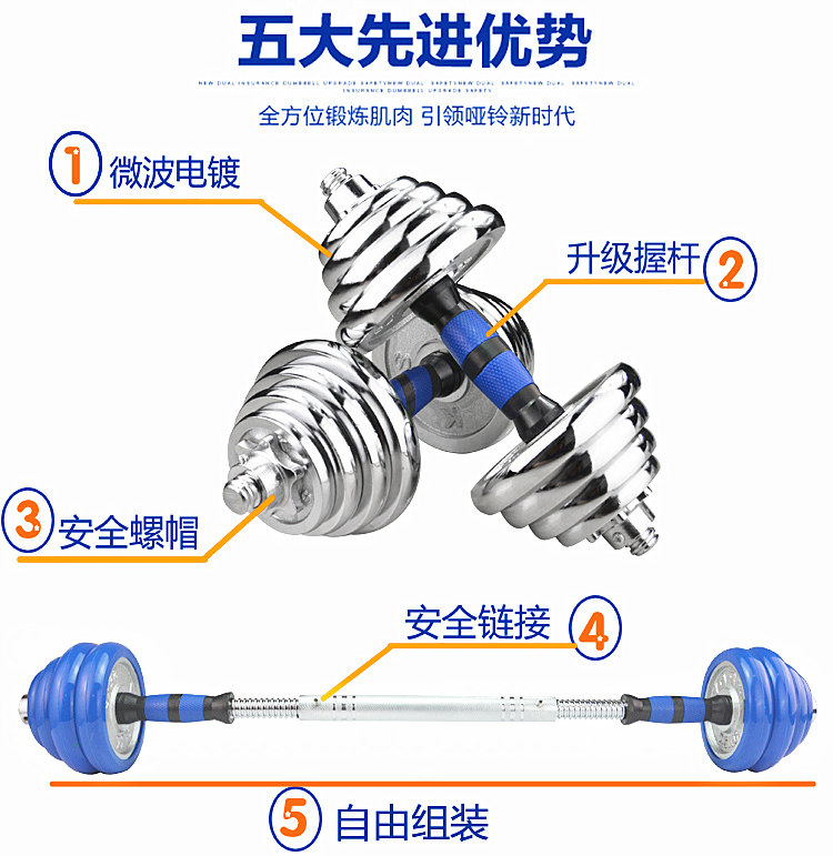 淘宝单只哑铃包邮男士电镀哑铃10 20 30斤套装家庭用健身器材练胸臂肌