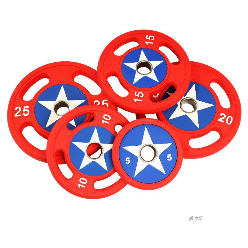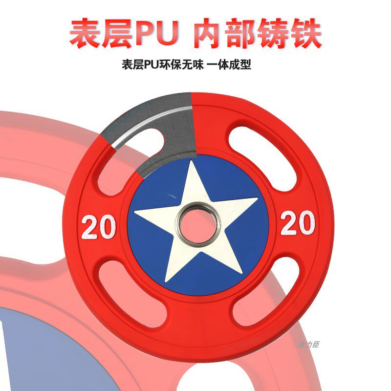淘宝美队PU杠铃片健身房商用哑铃环保无味大孔包胶手抓运动配重片杠铃