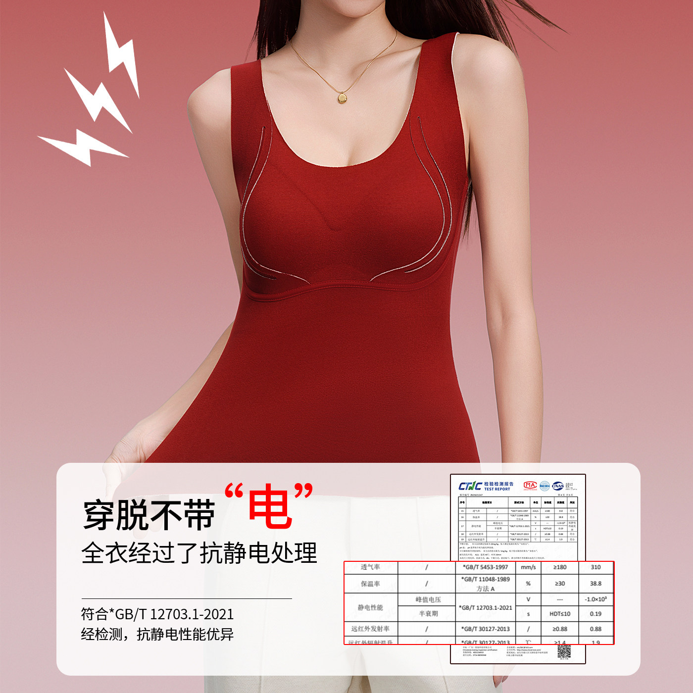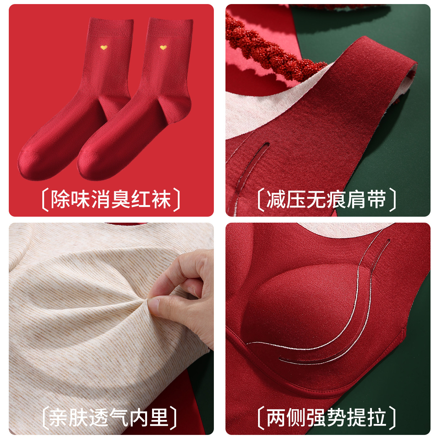 天猫猫人无痕保暖背心本命年内衣套装女自带胸垫红色结婚新年马年礼盒