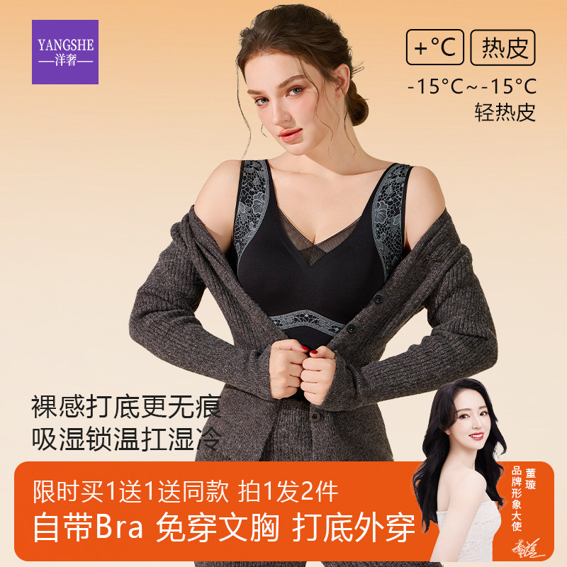 洋奢发热保暖背心女胸罩一体式内衣2026新款冬内搭带胸垫免穿文胸