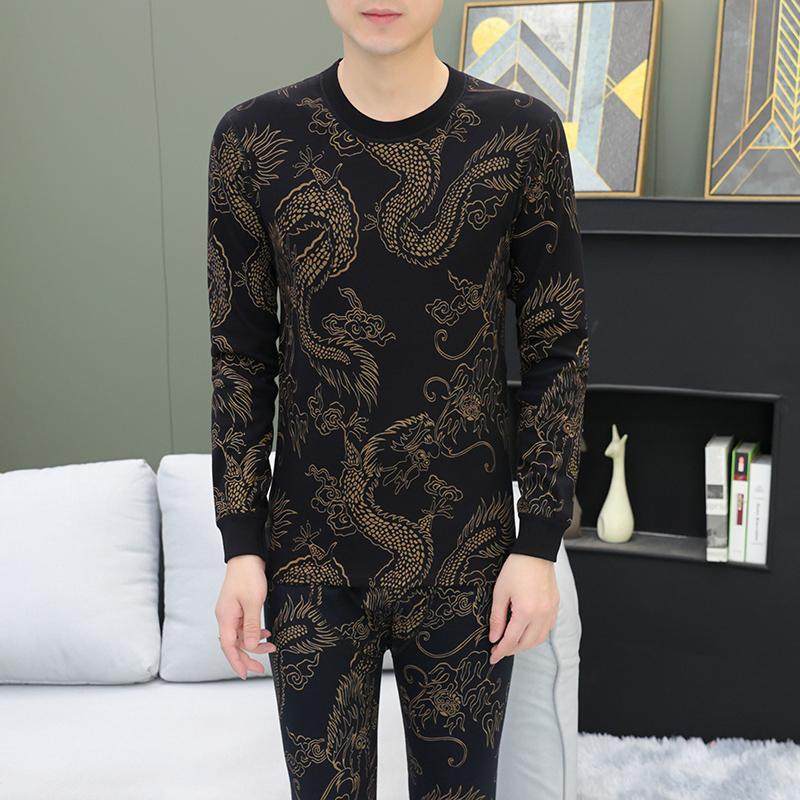 天猫纯棉男士秋衣秋裤两件套潮流欧洲站保暖内衣套装全身印花个性男装