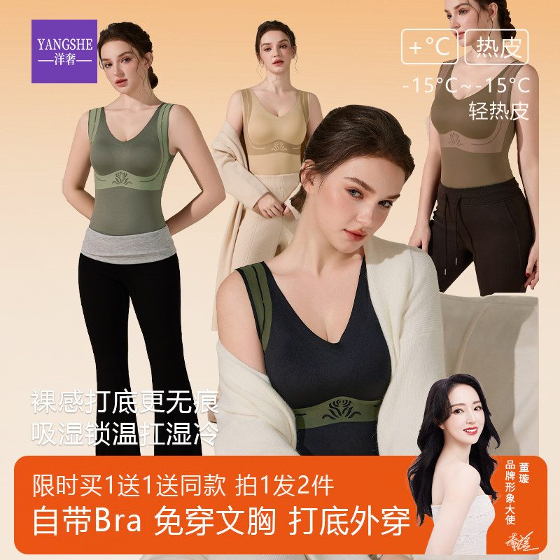 天猫洋奢发热保暖背心女胸罩一体式内衣2026新款冬内搭带胸垫免穿文胸