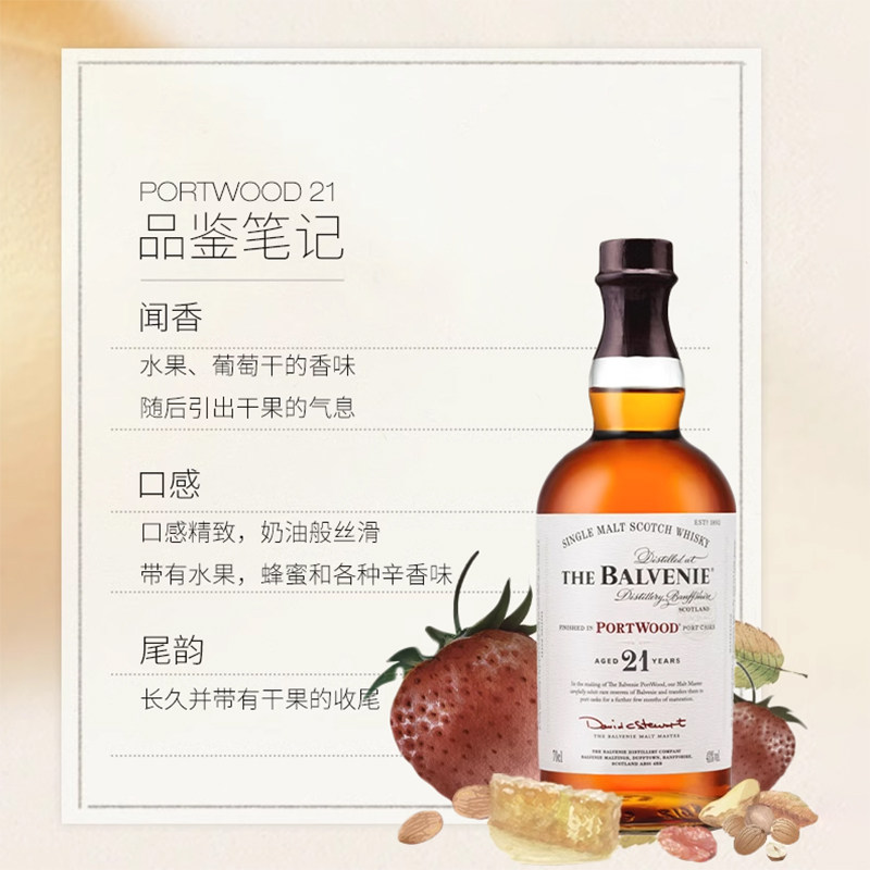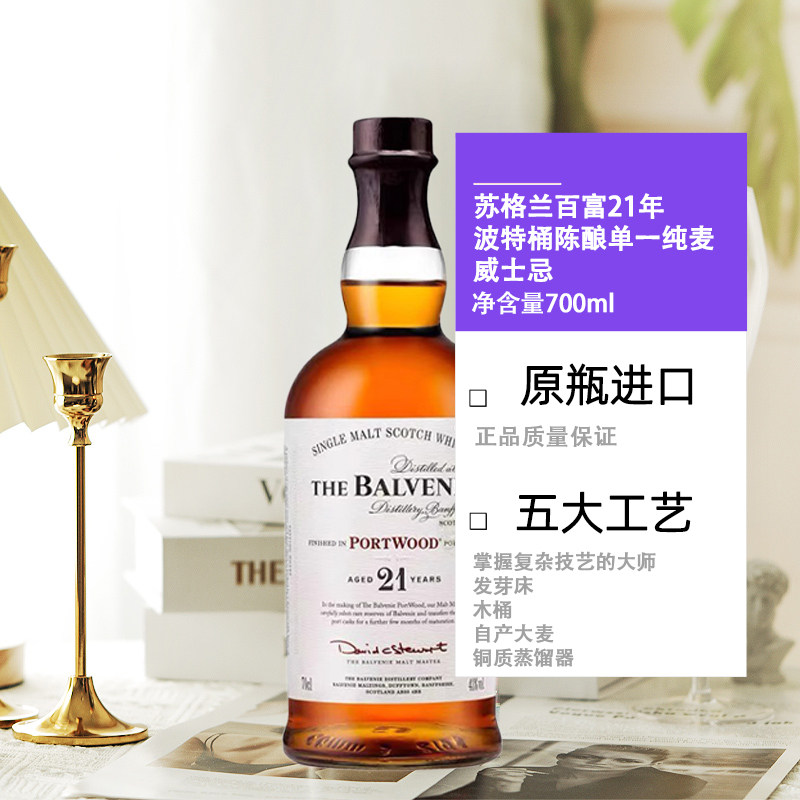 天猫【自营】Balvenie百富21年波特桶单一麦芽苏格兰威士忌700ml洋酒
