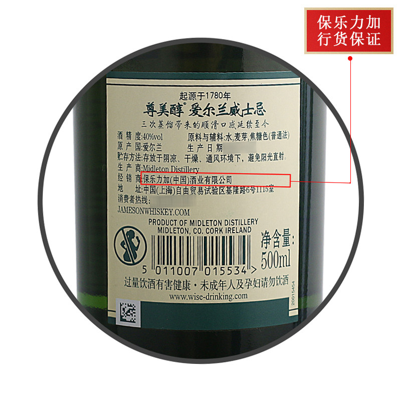 淘宝Jameson 尊美醇爱尔兰威士忌进口洋酒占美神 500ml 一瓶一码