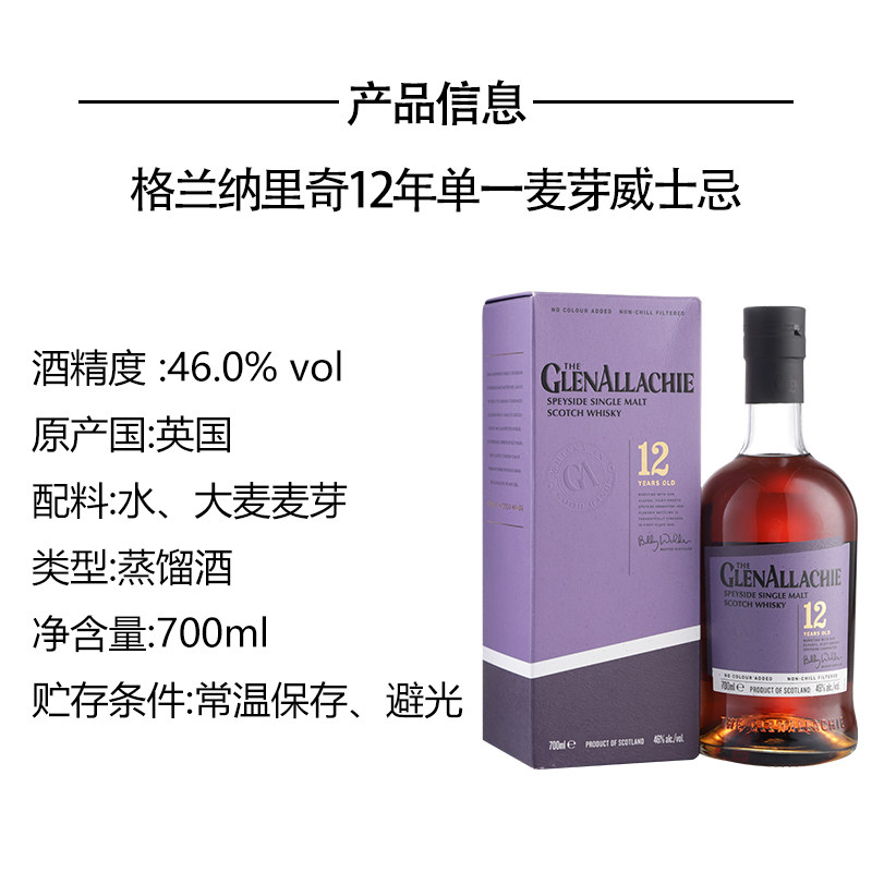 【自营】格兰纳里奇12年苏格兰单一麦芽威士忌,源自英国斯佩塞产区,精选优质大麦与天然泉水,经传统铜壶蒸馏,于美国橡木桶与雪莉桶中悉心熟成12年,赋予酒体深邃层次。酒液呈明亮琥珀色,散发蜂蜜、香草、成熟水果与淡淡烟熏气息,入口柔顺饱满,尾韵悠长带木质辛香。700ml装,酒精度40%,适合纯饮、加冰或调制经典鸡尾酒。作为格兰纳里奇经典之作,完美呈现苏格兰单一麦芽的纯净与复杂,是威士忌爱好者不可错过的佳酿,自饮送礼皆宜。