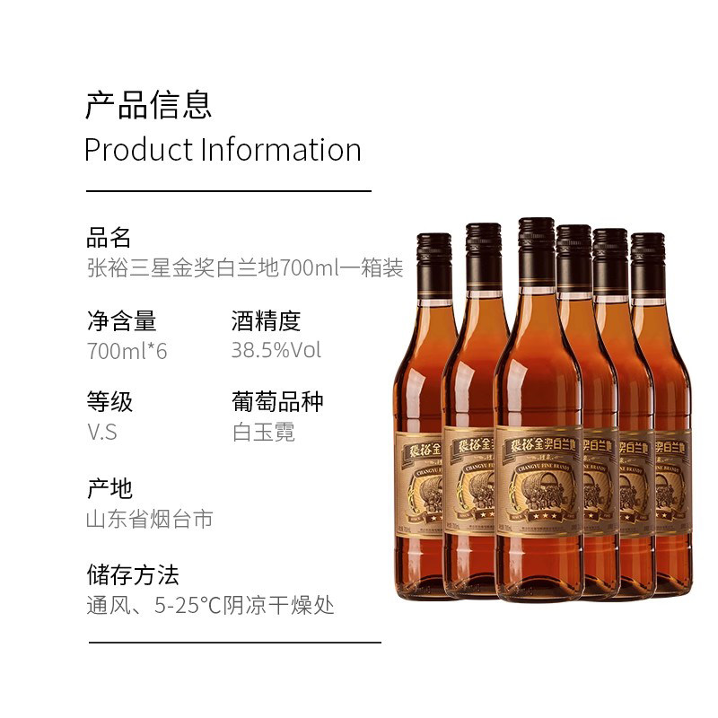 天猫张裕白兰地三星金奖38.5度整箱洋酒正品餐酒聚会