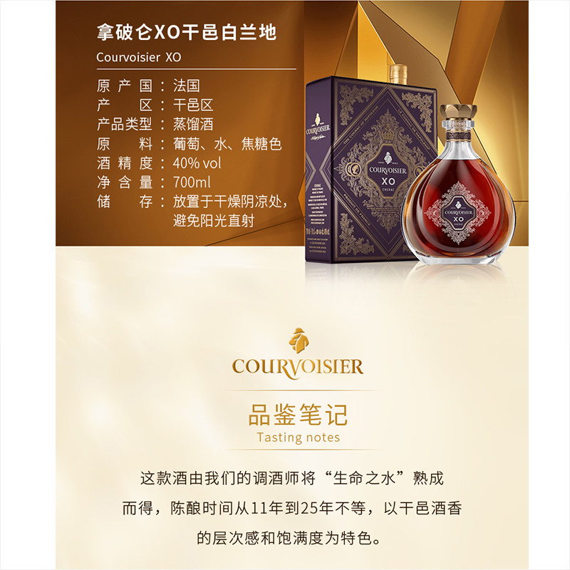 天猫拿破仑XO馥华诗干邑白兰地法国进口洋酒调酒烈酒礼盒装带防伪码款