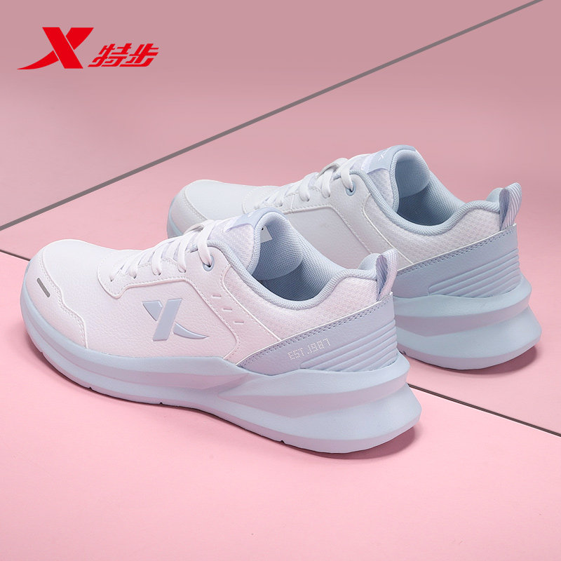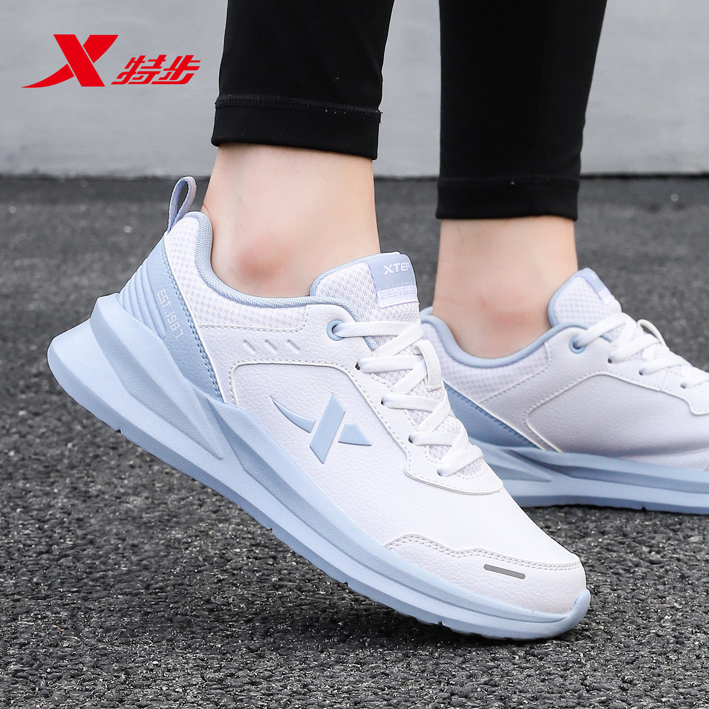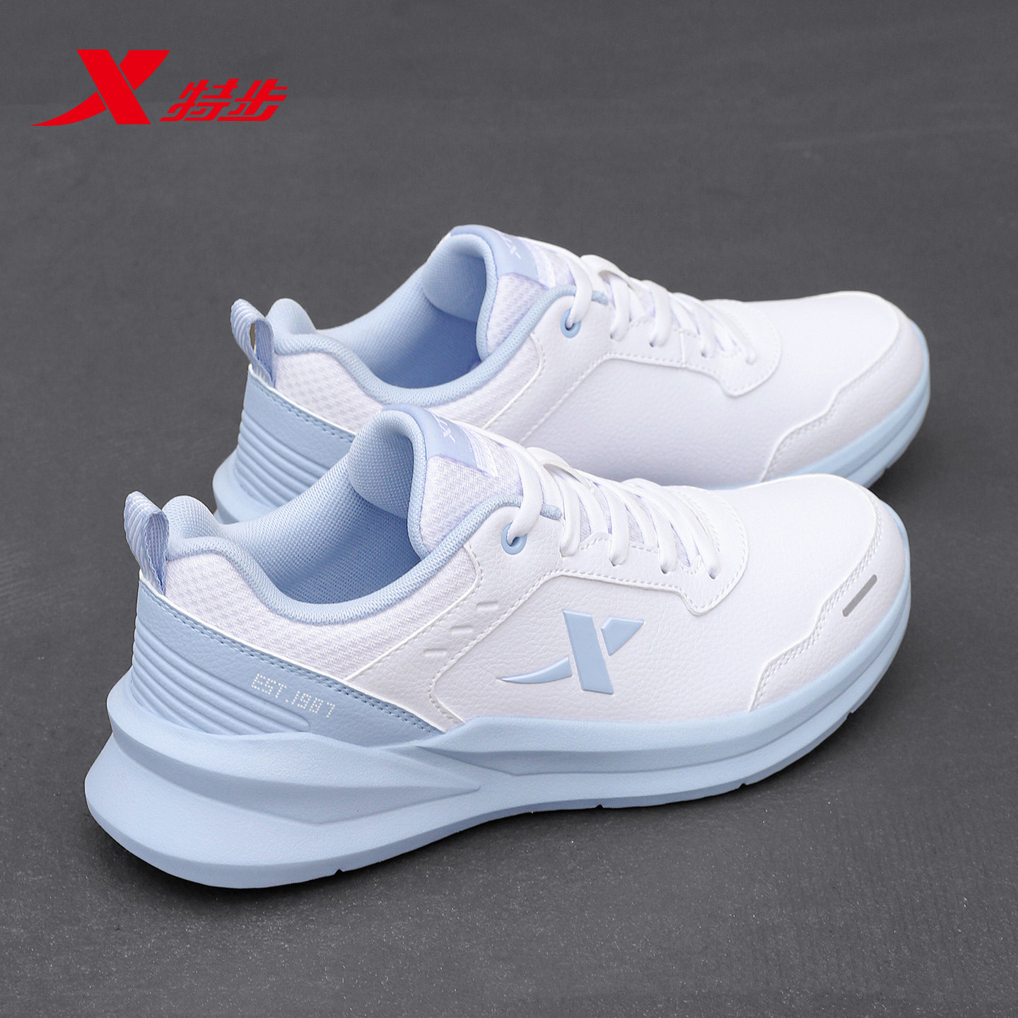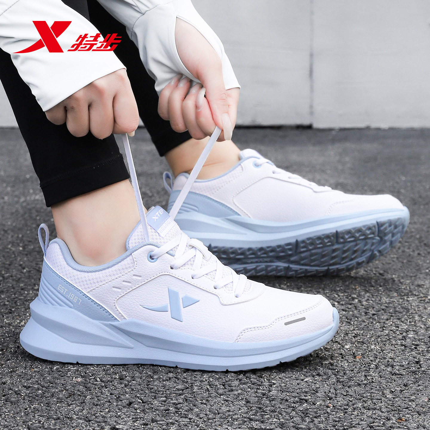 特步女鞋2025秋季新款生学生皮面防水运动鞋轻便白色跑步鞋休闲鞋