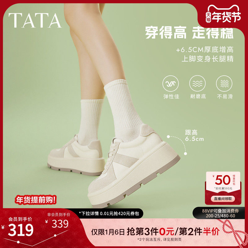 天猫TATA他她糕糕鞋厚底德训鞋女鞋子透气松糕鞋休闲板鞋新款CX901AM5