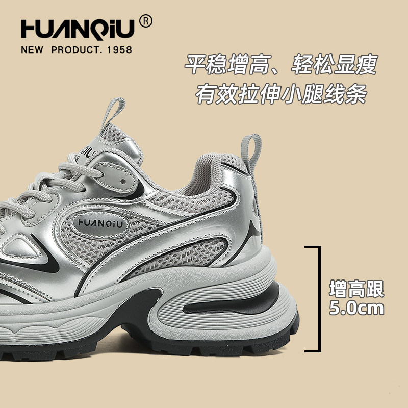天猫环球厚底银色老爹鞋女款2025新款秋季轻便百搭超火炸街休闲运动鞋
