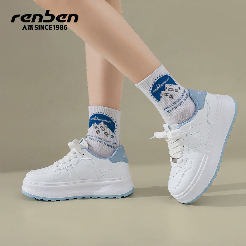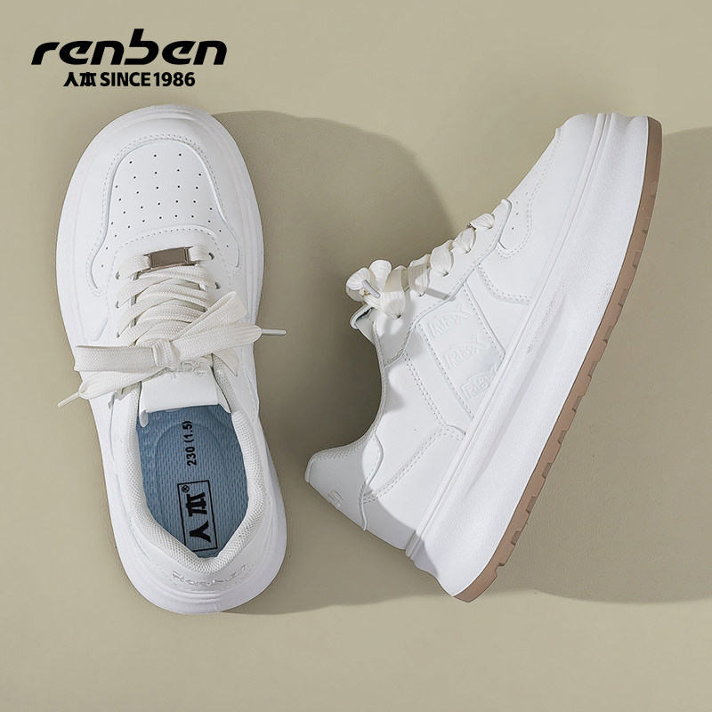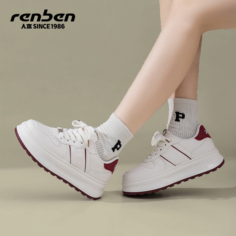 天猫人本小白鞋女款2025春季新款红色舒适运动时尚百搭厚底增高休闲鞋