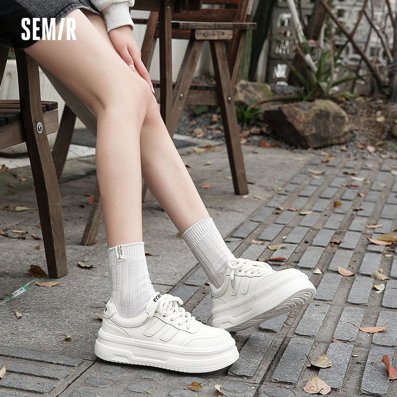 天猫Semir女鞋百搭小白鞋2025秋冬新款厚底增高运动休闲板鞋白色鞋子
