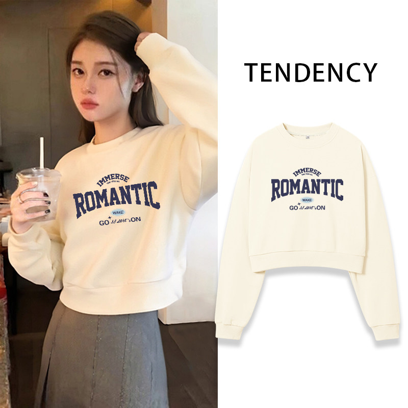 天猫KWV真维斯圆领卫衣女2026春秋新款爆时尚洋气小个子短款卫衣外套