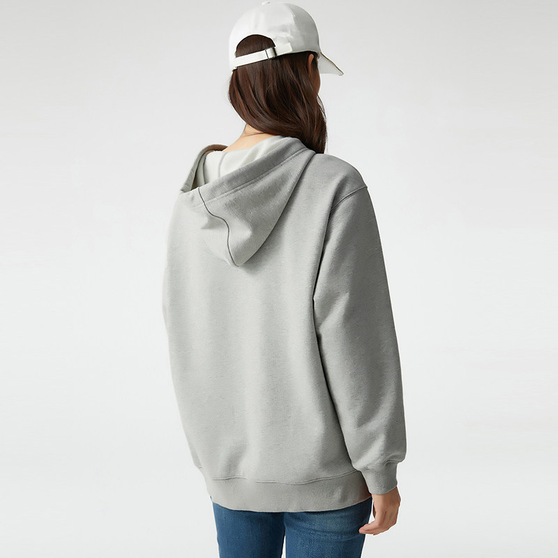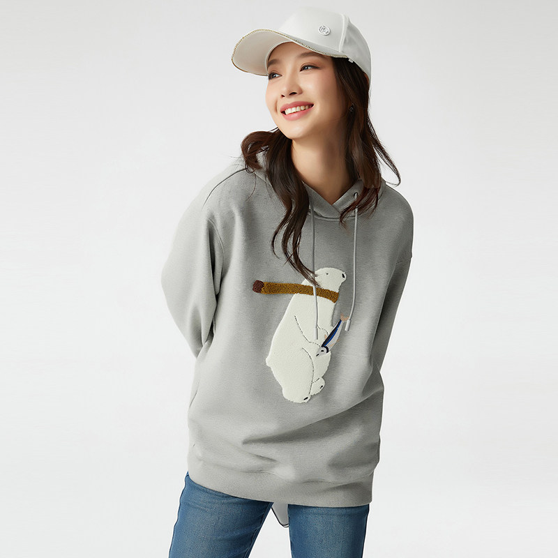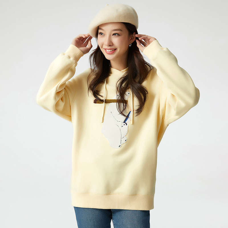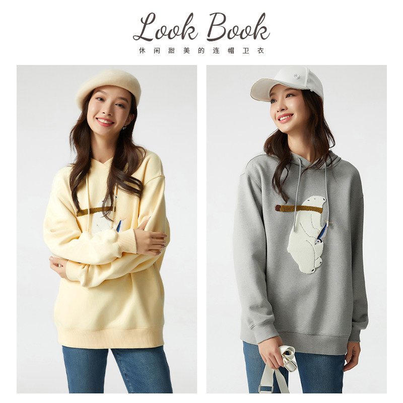 天猫布景卫衣女加绒秋季新品简约可爱图案刺绣连帽宽松外套上衣1014