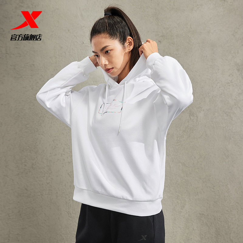 天猫特步加绒女连帽卫衣2025冬季新款保暖训练运动上衣977428930338