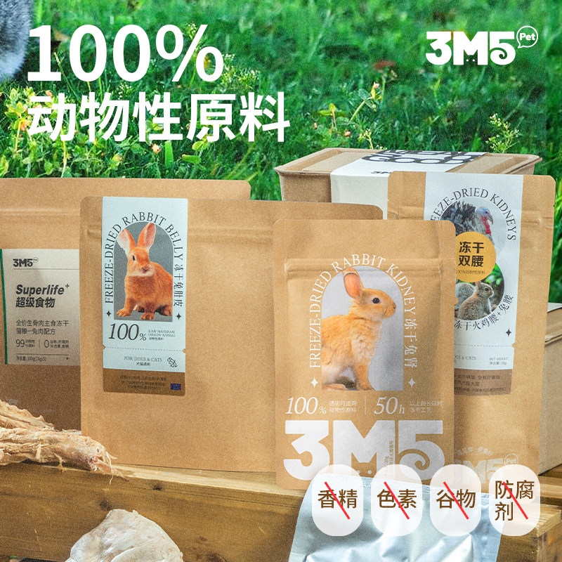 天猫【零食】3m5pet冻干零食猫咪兔肾兔腰宠物成猫幼猫狗狗无添加原切