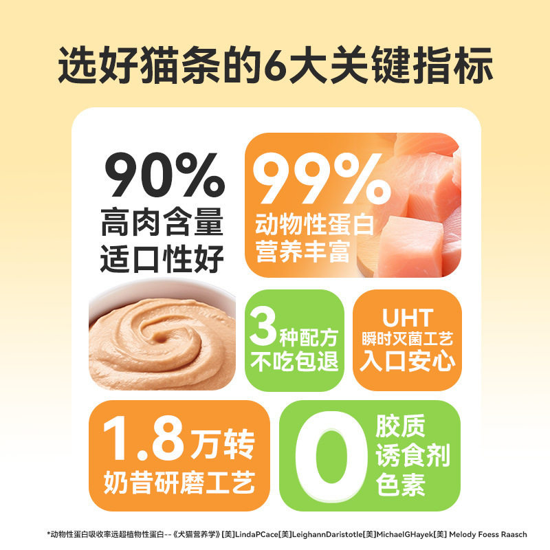 猫条100支整箱装,专为猫咪健康与美味精心打造!精选优质原料,富含高蛋白与必需营养,既能作为日常增肥辅食,又能有效补充水分,特别适合不爱喝水的猫咪。口感细腻、鲜香浓郁,挑食猫咪也难以抗拒。每支独立包装,方便携带与储存,开封即食,干净卫生。本产品通过官方旗舰店直供,品质有保障,无添加防腐剂与诱食剂,安全健康。无论是奖励、互动还是日常营养补充,这款猫条都是理想选择。一箱100支,满足多猫家庭或长期喂养需求,让爱宠吃得开心,主人更安心。给猫咪最贴心的呵护,从一口营养猫条开始!