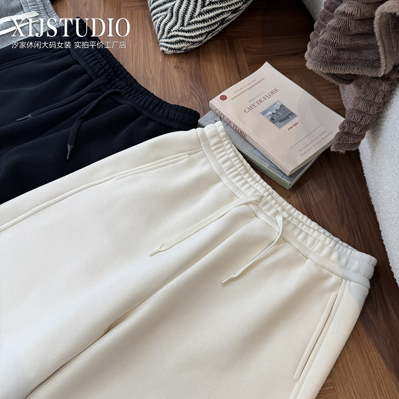 淘胖mm秋冬抓绒显瘦卫裤木子理想大码女装松紧腰百搭休闲裤子200斤