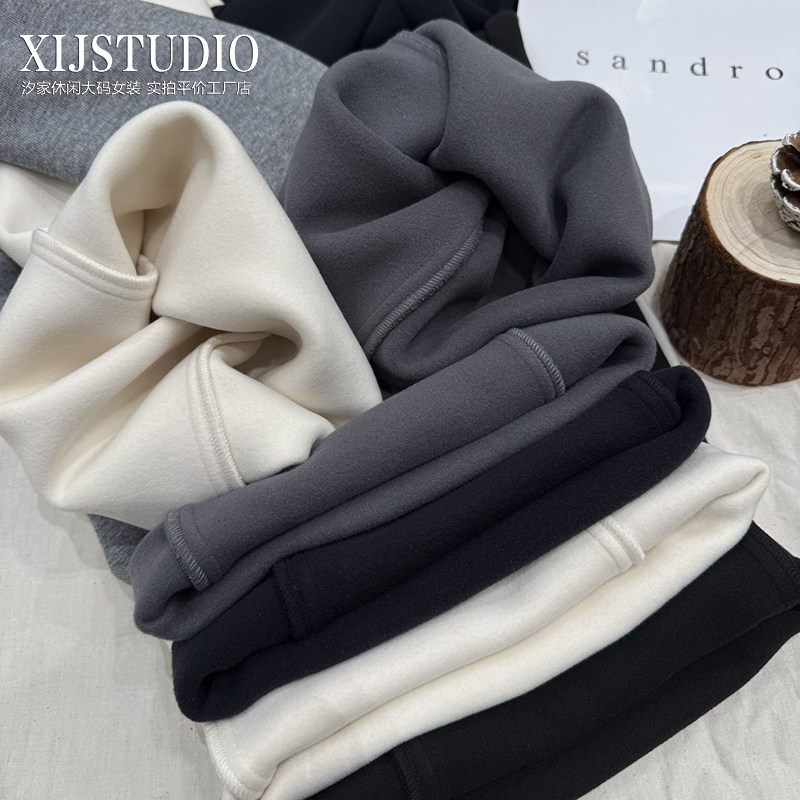 淘胖mm冬季简约直筒休闲裤木子理想大码女装松紧腰百搭磨毛厚长裤子