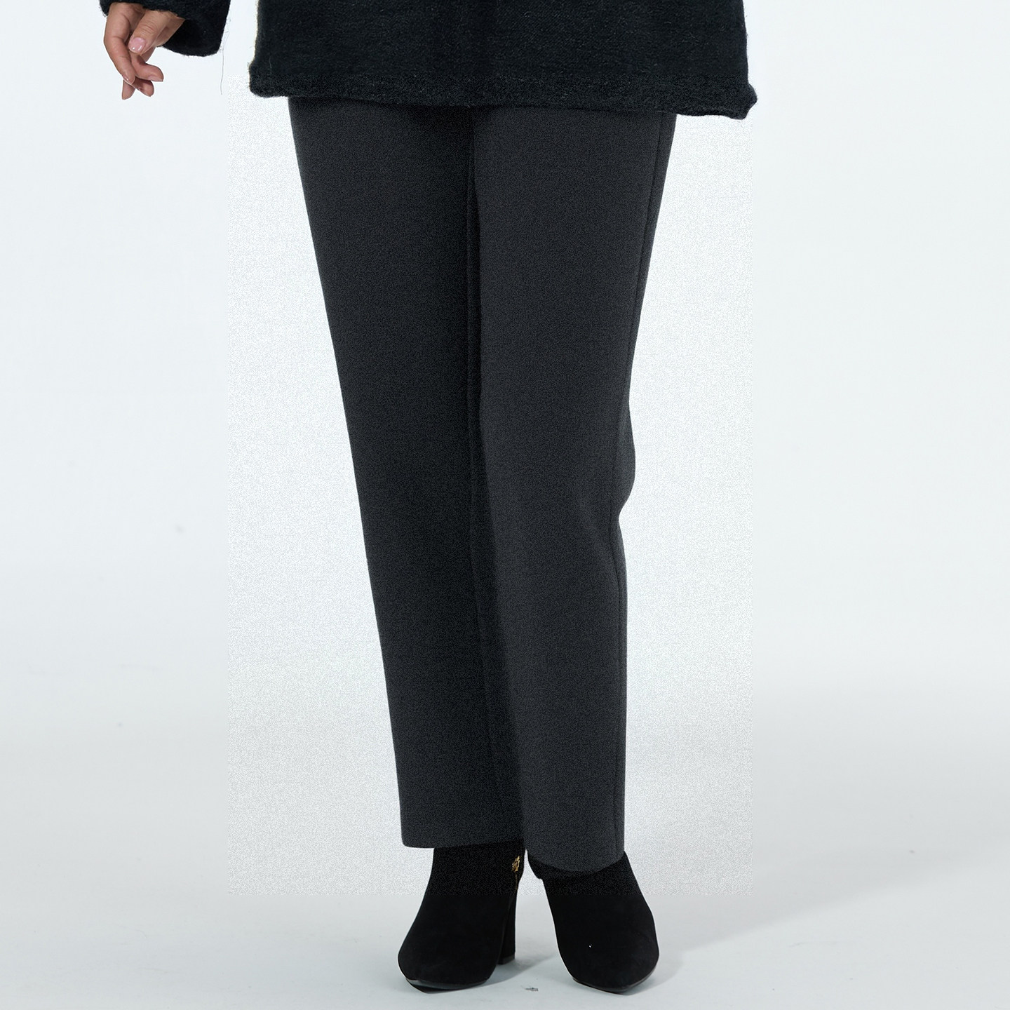 淘胖mm冬季简约直筒休闲裤木子理想大码女装松紧腰百搭磨毛厚长裤子