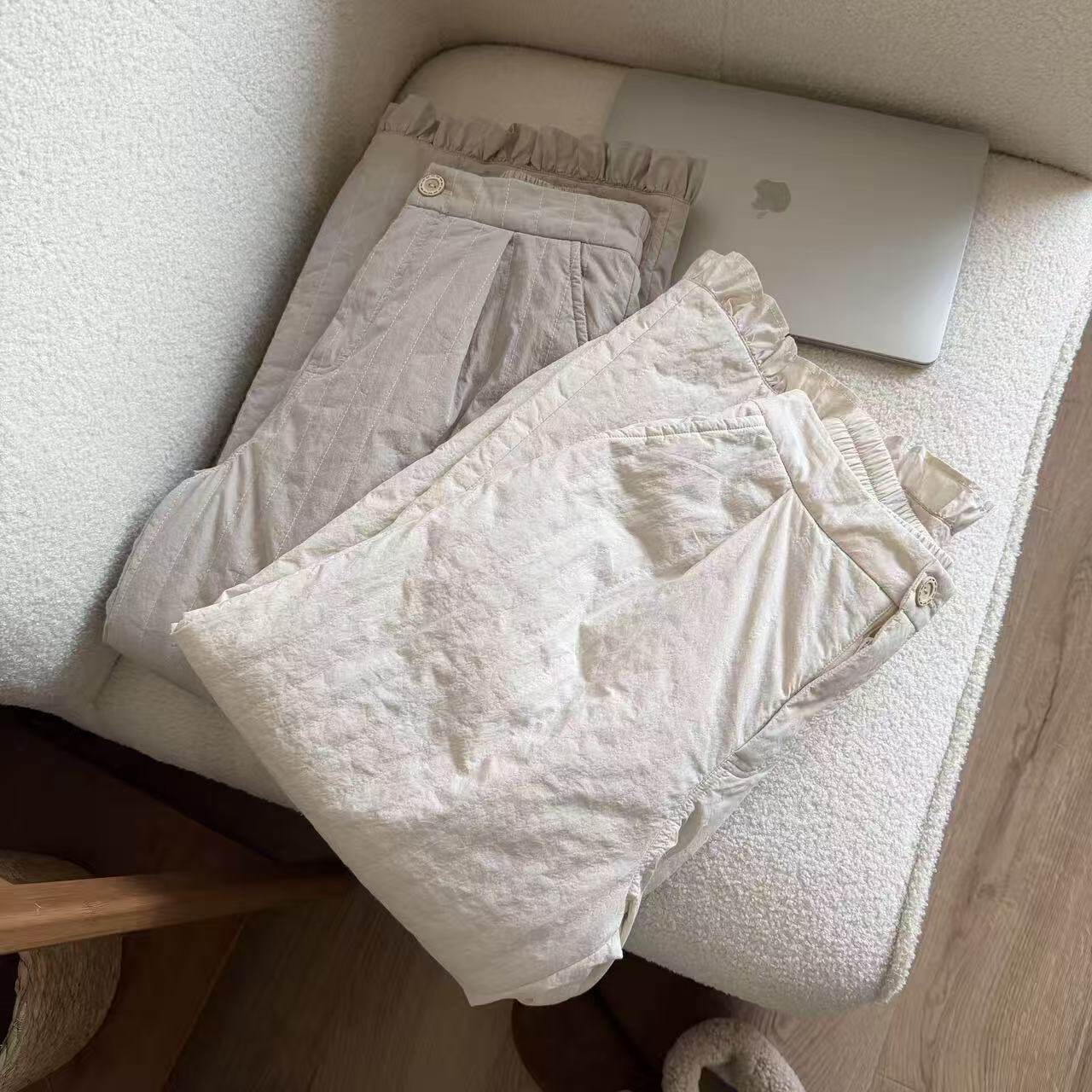 小文姐W2231花边夹棉加绒保暖裤,专为小个子女生设计,兼顾保暖与时尚。采用高腰松紧腰头设计,舒适贴合不勒腰,轻松拉长腿部比例;直筒版型修饰腿型,百搭显瘦。内里加绒处理,柔软亲肤,锁温保暖,适合秋冬季节日常穿搭。裤脚精致花边点缀,增添甜美气息,打破单调。无论是搭配毛衣、卫衣还是短款外套,都能轻松打造休闲慵懒风。面料柔软有弹性,活动自如不束缚。多色可选,满足不同搭配需求,是小个子女生冬日衣橱的实用单品,温暖与美感兼具。