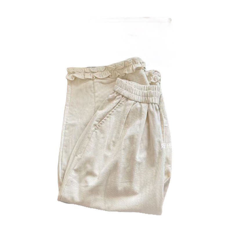 淘宝小文姐 W2231-花边夹棉加绒保暖裤休闲高腰松紧百搭小个子直筒裤