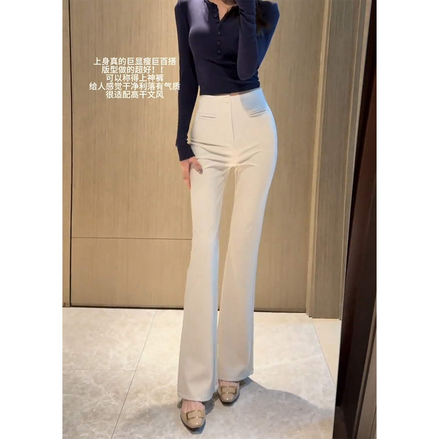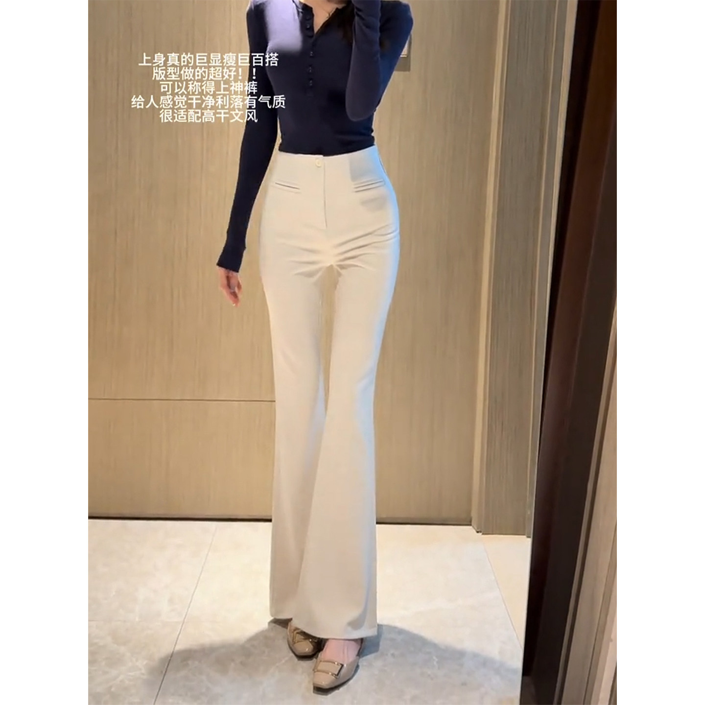淘宝杏色气质加绒微喇西装裤女2025秋冬季新款高腰修身垂感休闲喇叭裤