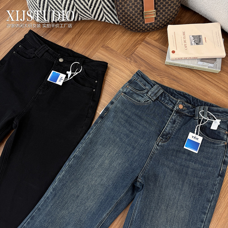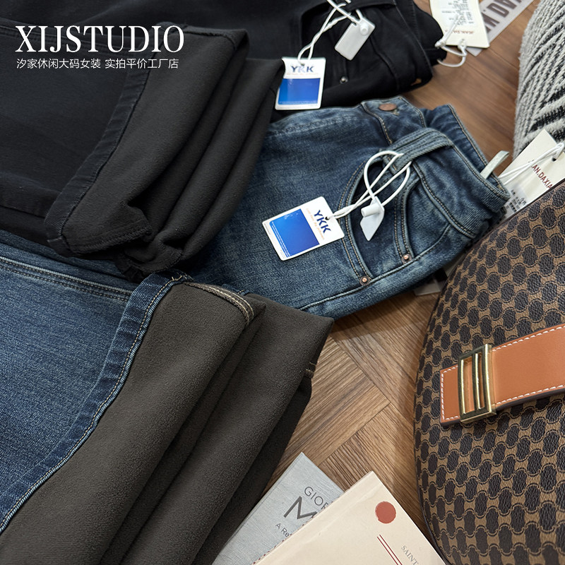 淘宝汐家女裤 秋冬高腰微喇裤大码弹力性感风长裤显瘦显腿长牛仔裤