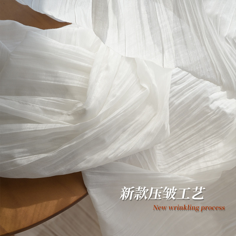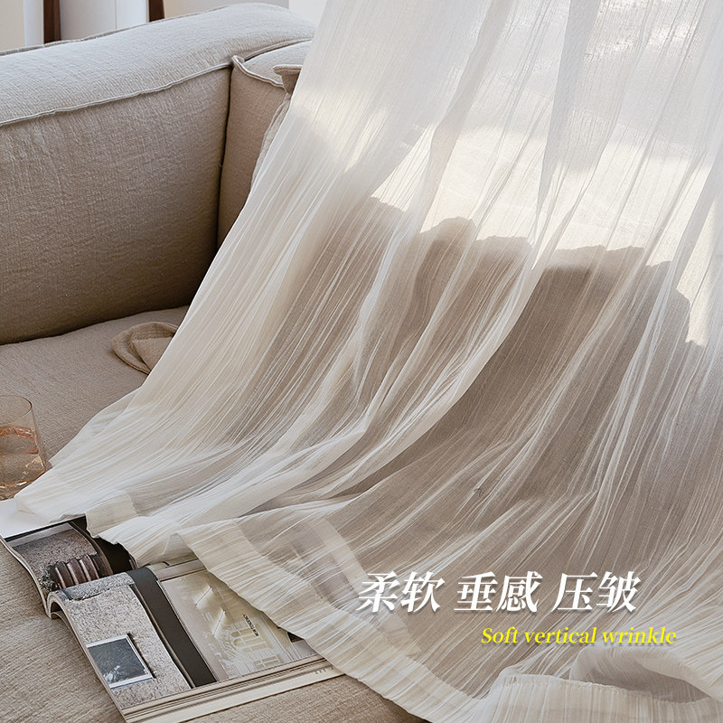 淘宝本原压皱百褶白色窗纱定制褶皱感日式质感落地窗帘民宿纱棉纱新款