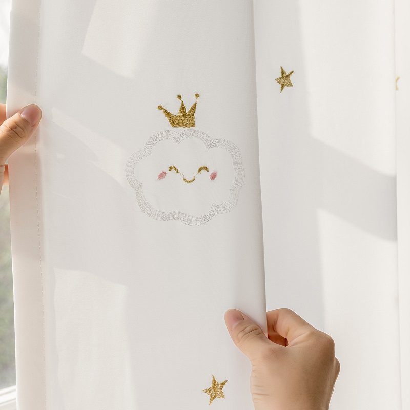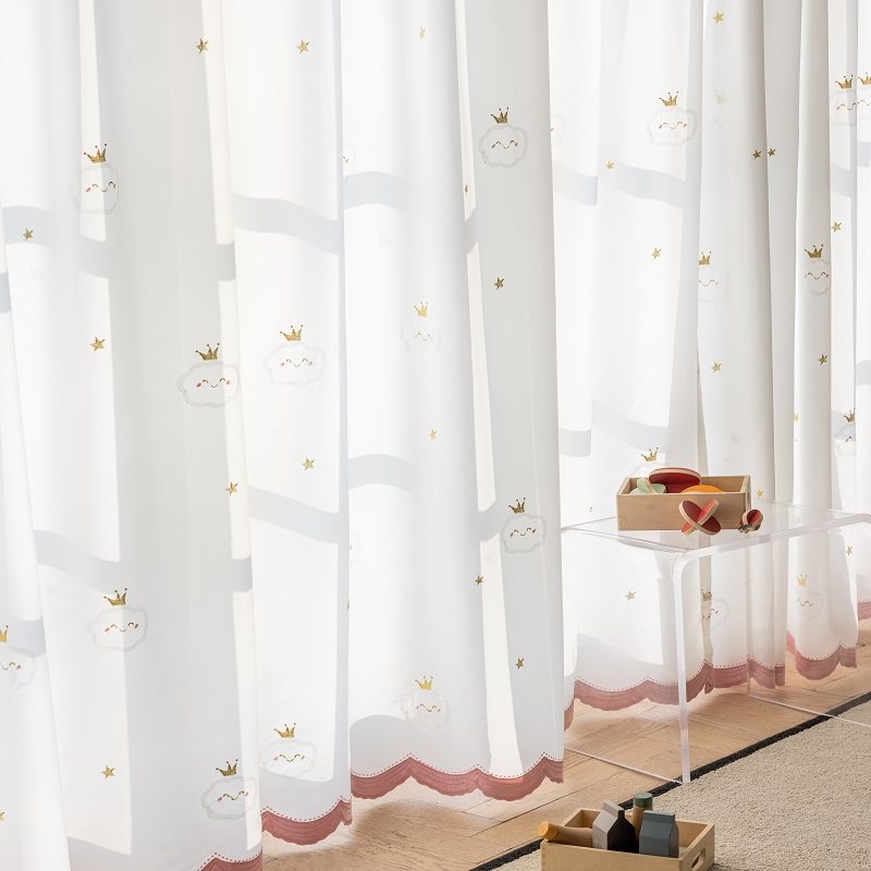淘宝儿童房新款窗纱透光不透人卡通皇冠女孩卧室飘窗遮阳防晒白纱窗帘