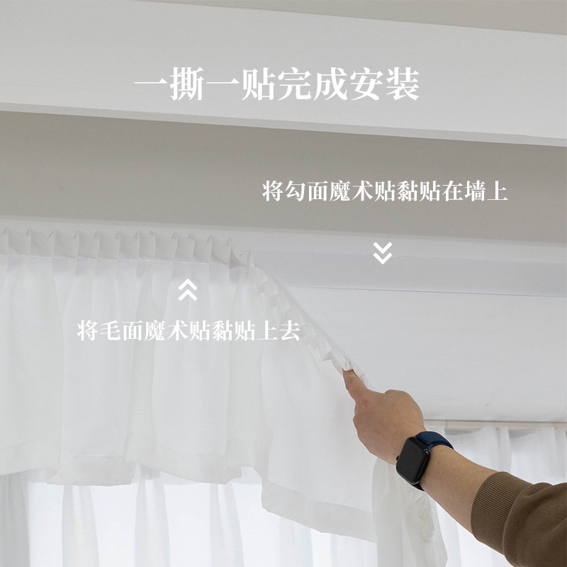 淘宝网红新款魔术贴窗纱工字短帘头免打孔客厅卧室飘窗顶部装饰半遮光