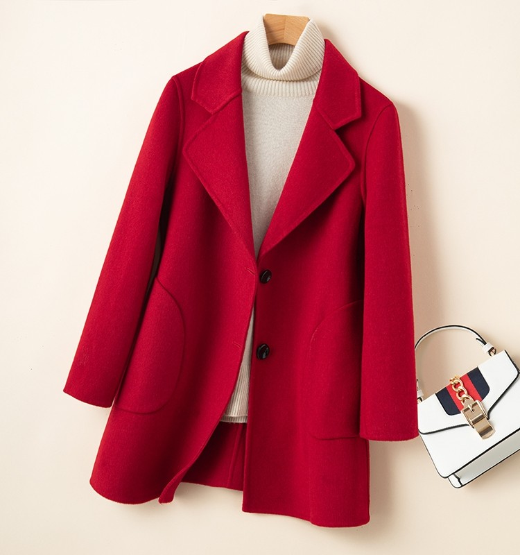 淘红色大衣女短款双面羊绒2025秋冬季高级感复古小个子毛呢外套结婚