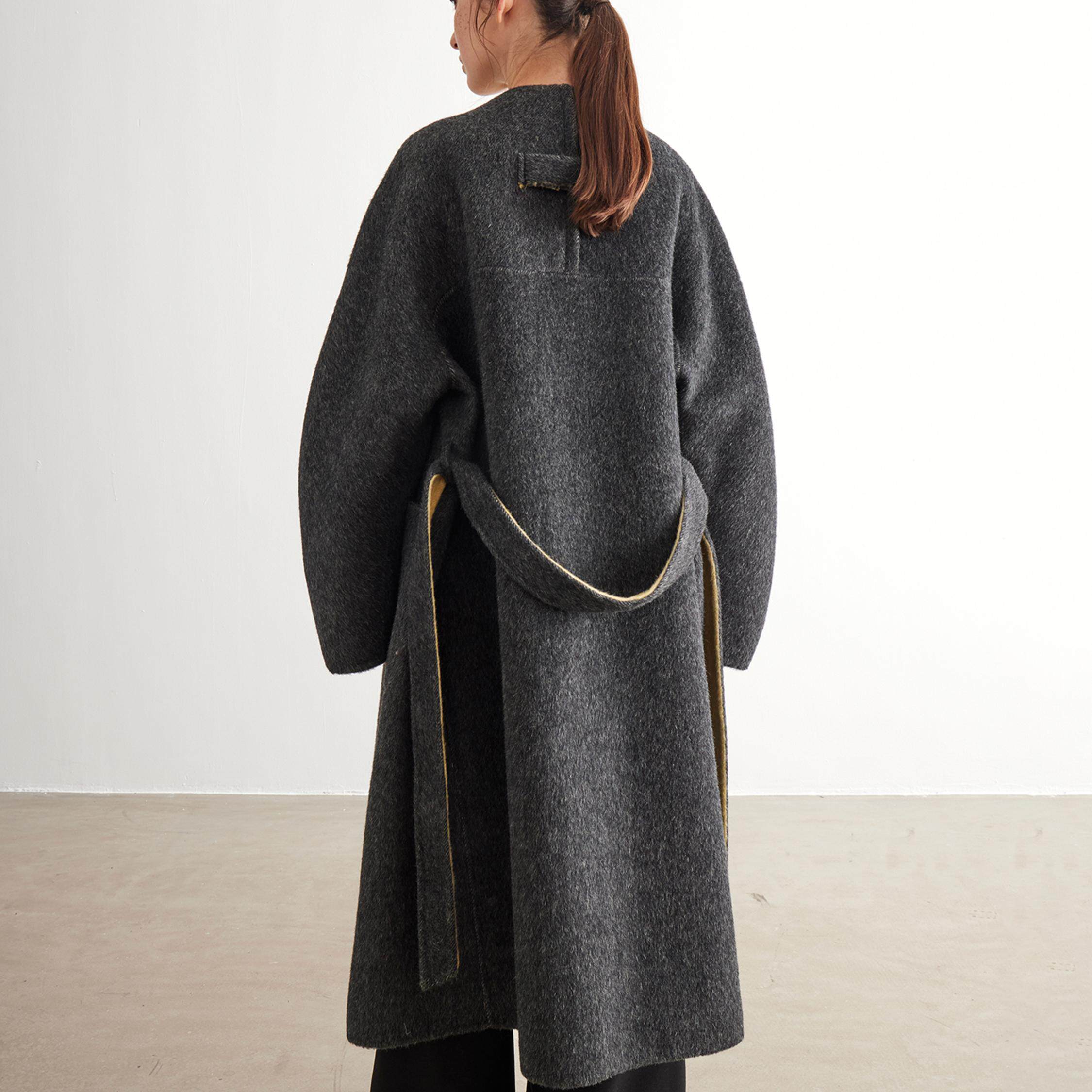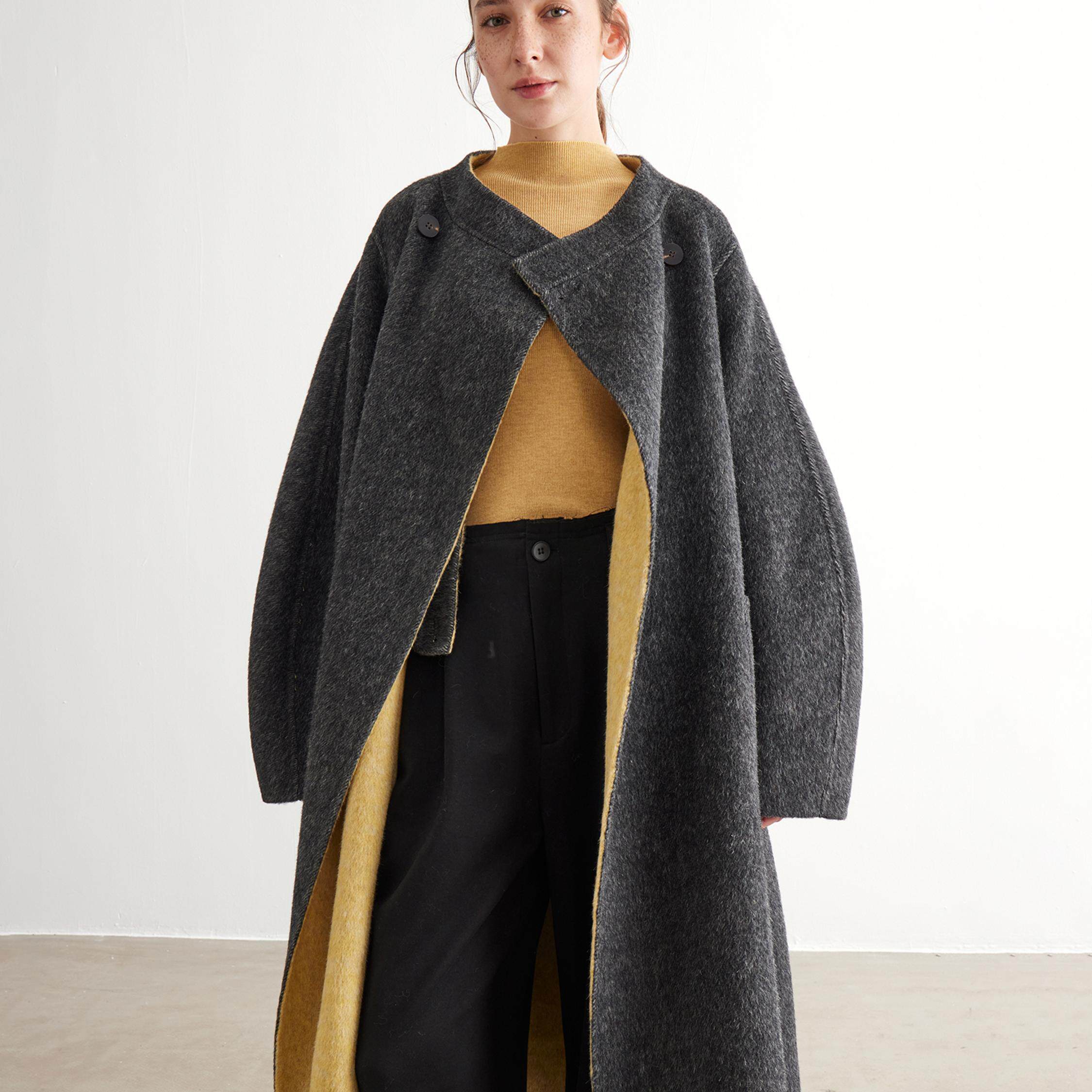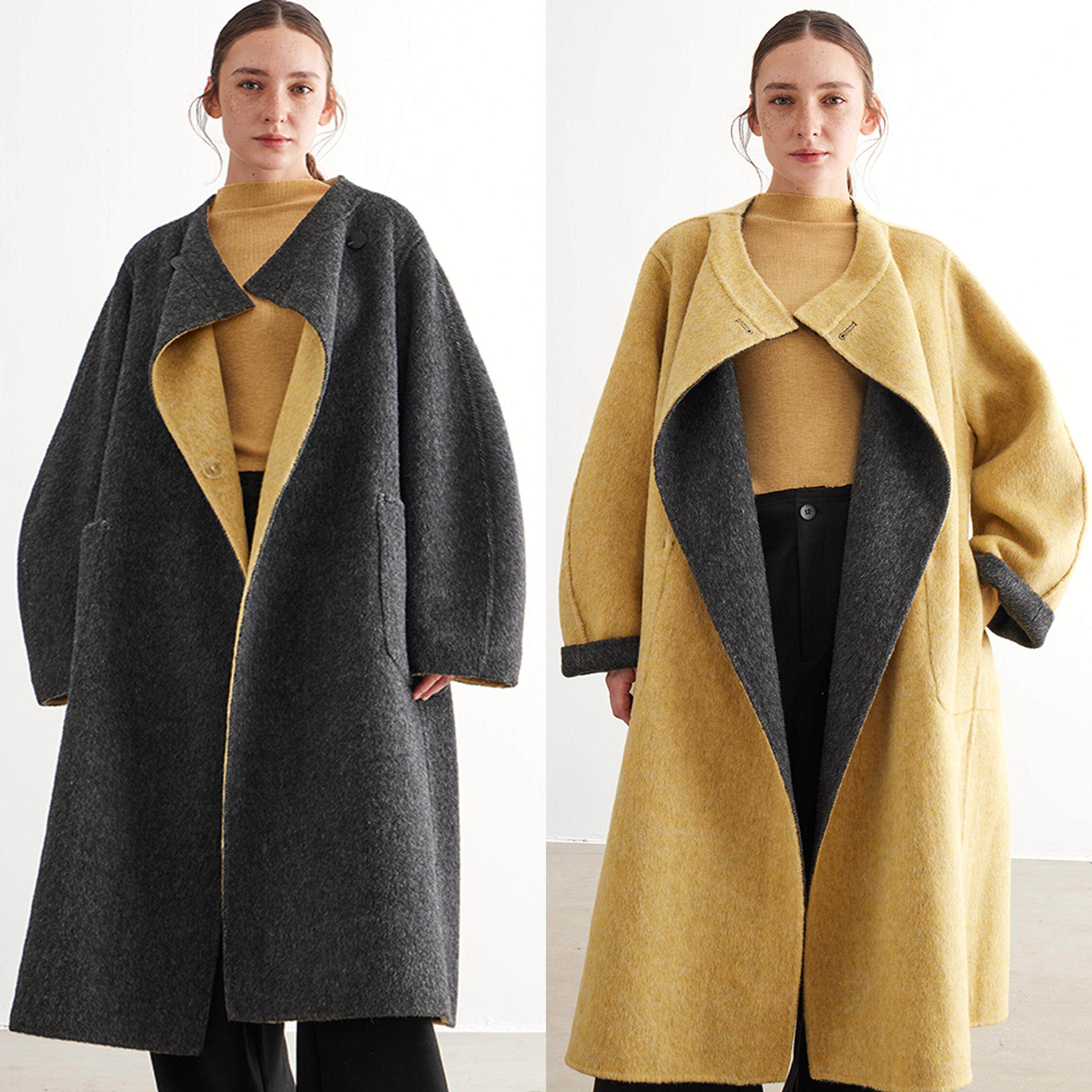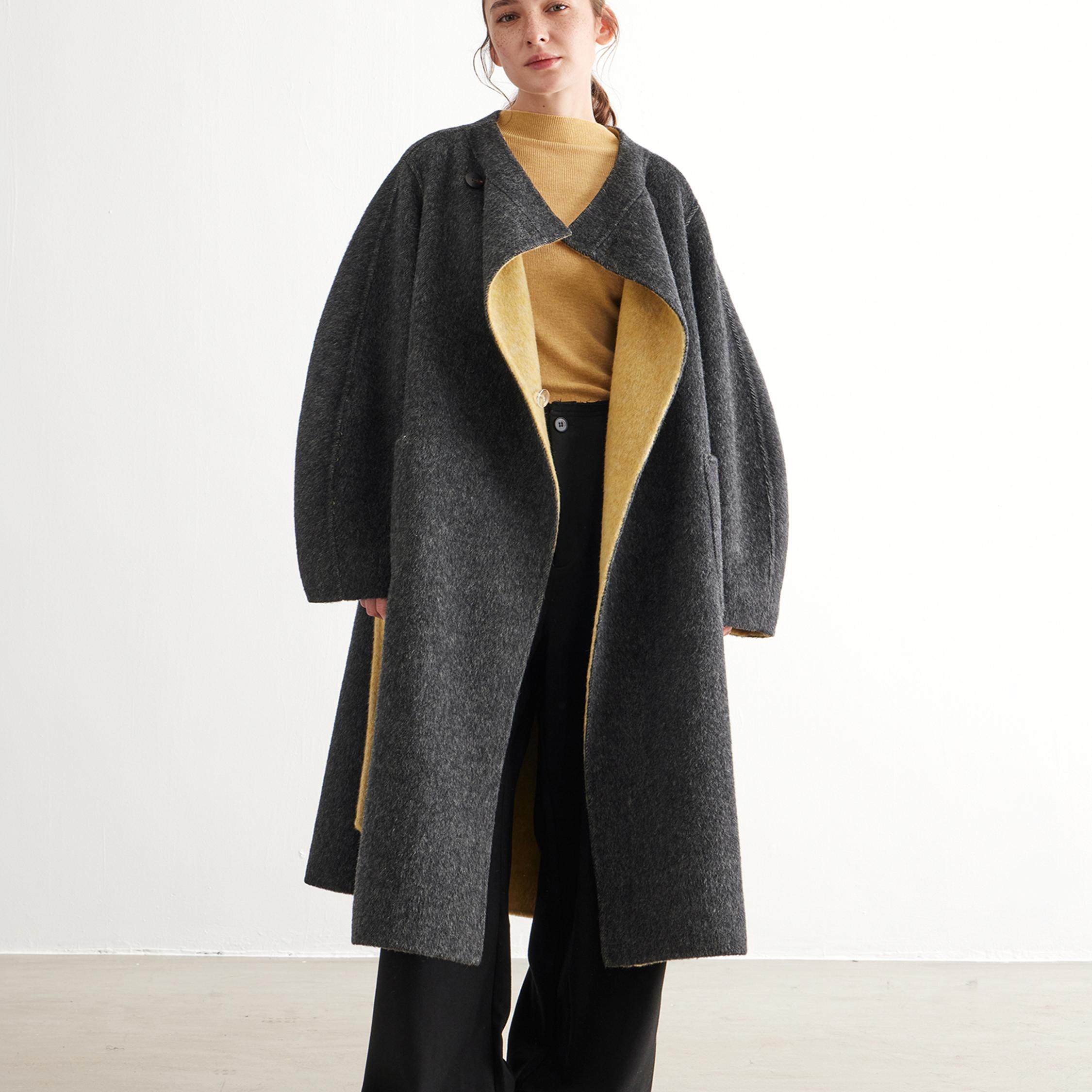天猫NOEND撞色设计羊毛大衣 真丝羊毛保暖长毛外套 廓形版 两面可穿