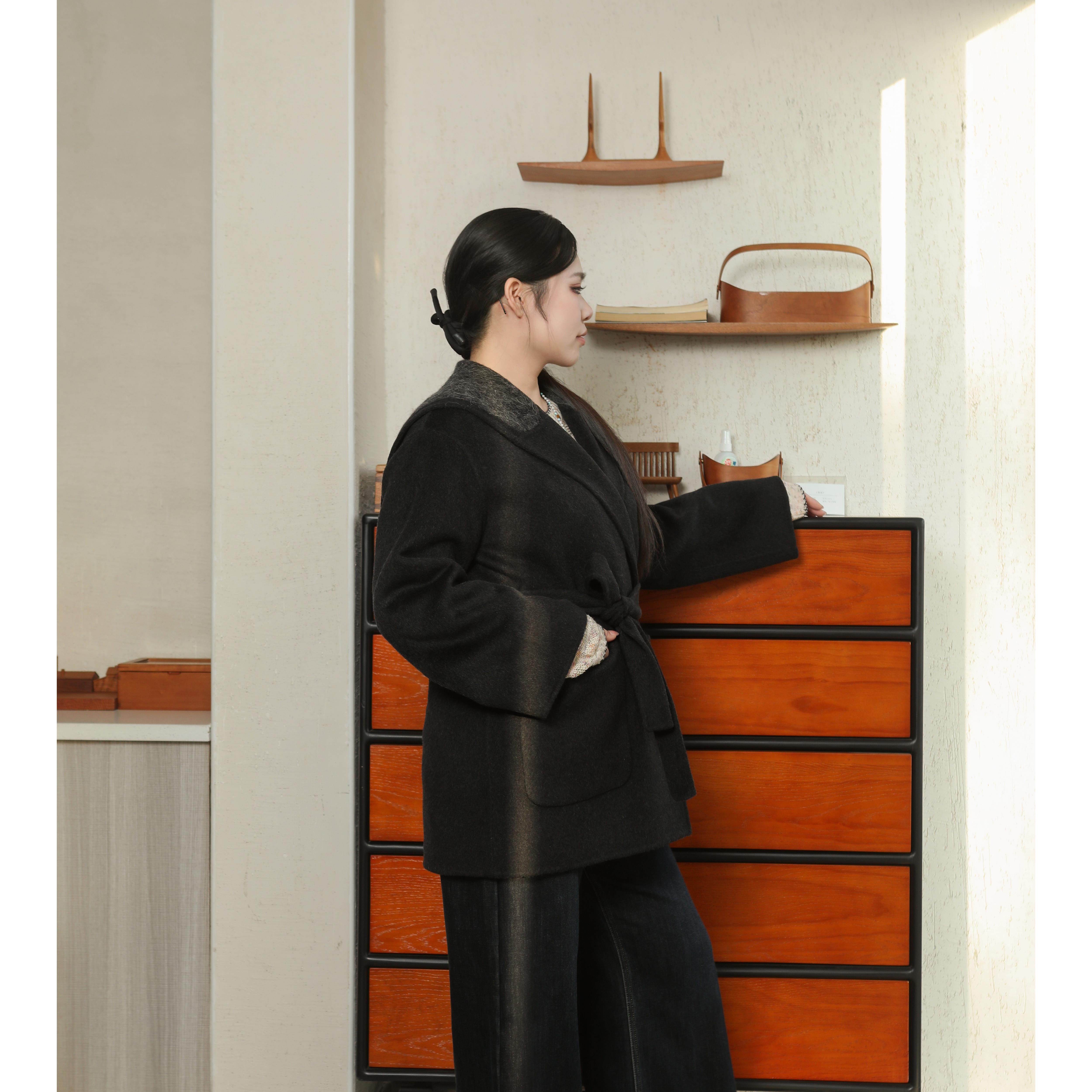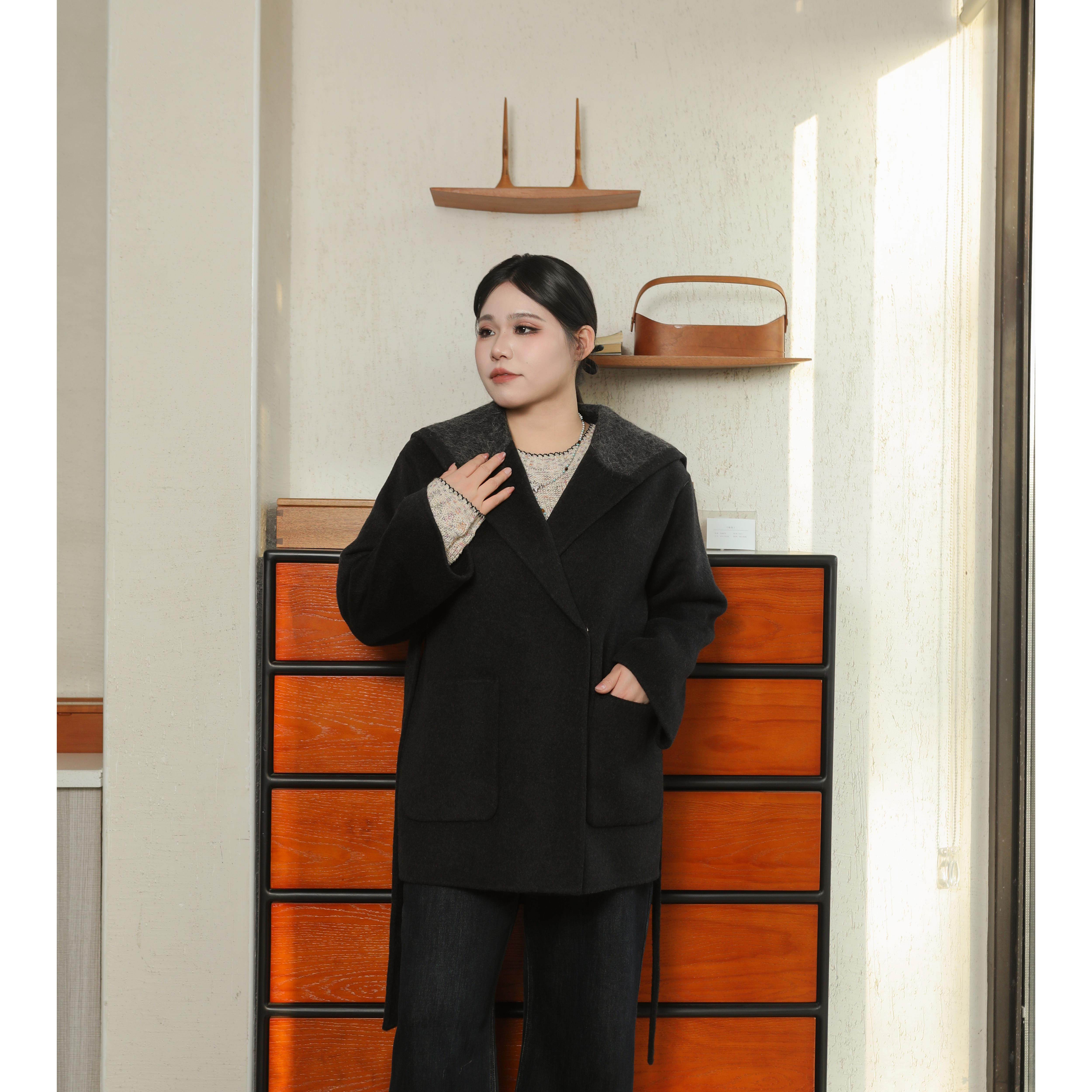 美丽客栈高端大码女装专为追求品质与舒适的胖MM量身打造。这款绵羊毛双面呢大衣采用优质双面呢面料,触感柔软、保暖性强,兼具挺括版型与垂坠质感。经典黑灰色调,简约大气,轻松驾驭多种场合。宽松剪裁巧妙修饰身形,显瘦不紧绷,包容各种体型。高腰线设计与微廓形下摆相得益彰,视觉拉长比例,展现优雅气质。精致走线、金属扣饰等细节彰显匠心工艺。无论是通勤还是休闲,都能穿出自信与时尚感。美丽客栈,让每一位女性在大码女装中也能拥有高端、得体的穿衣体验。
