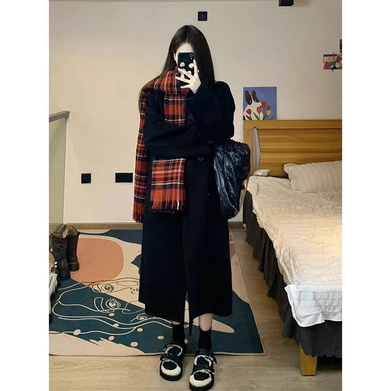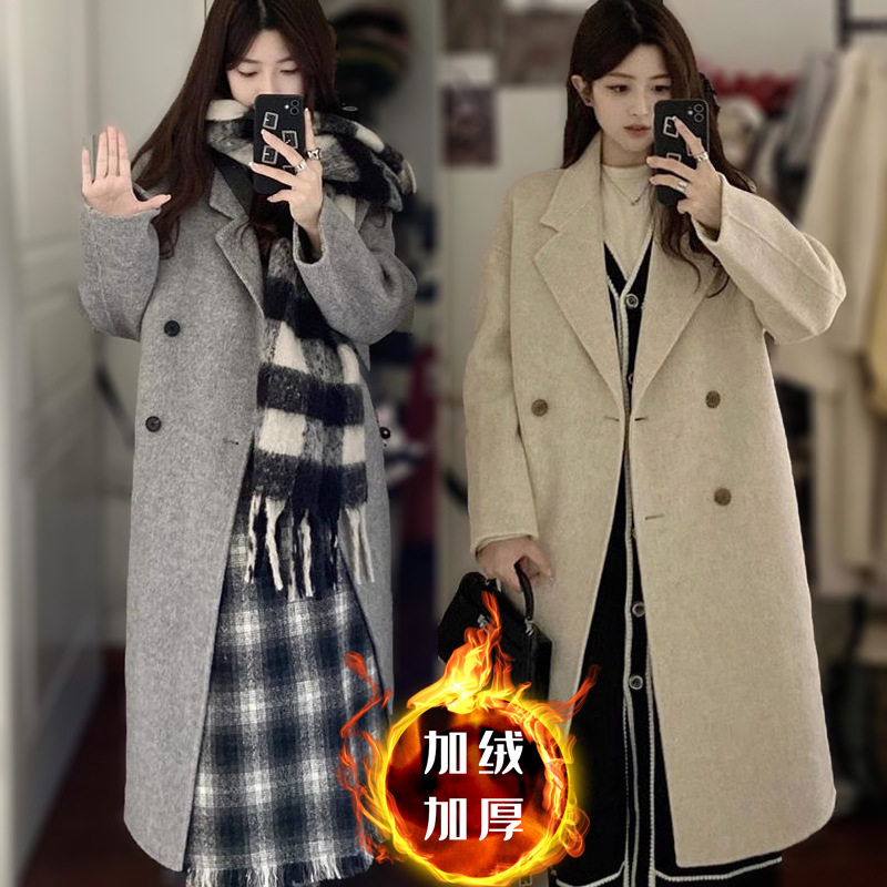 新款冬季妮子冬天加棉加厚中长款毛呢子外套女装仿羊绒大衣修身